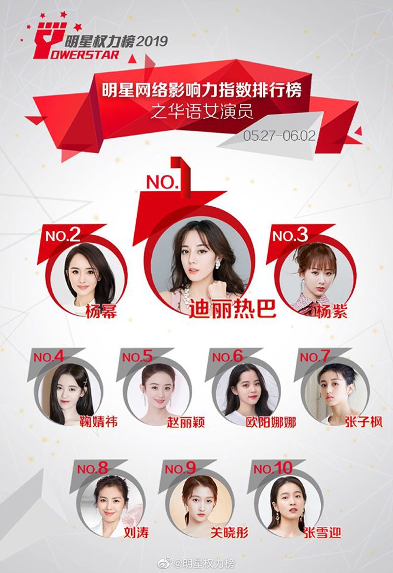 เว็บไซต์ POWERSTAR เผย TOP 10 อันดับ ดารานักแสดงสาวชาวจีนที่โด่งดังและมีอิทธิพลบนโลกโซเซียล โดยการสำรวจหาข้อมูลความนิยมจาก Big Data จากโซเซียลมีเดียจีน จะมีซูเปอร์สตาร์สาวคนไหนที่ติดการจัดอันดับนี้บ้างตามไปดูกันได้เลย