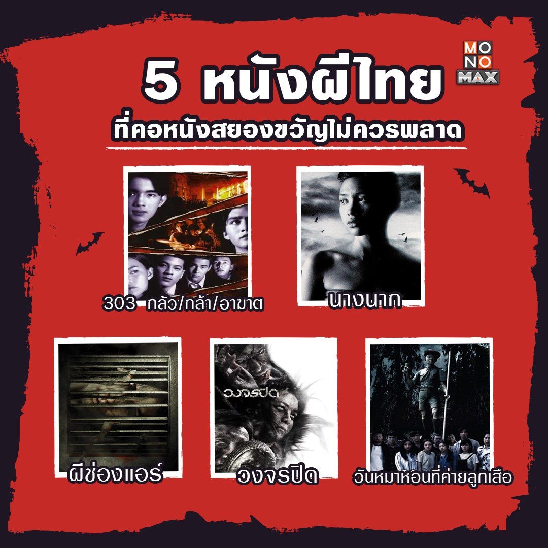 ไหนใครเป็นคอหนังผีไทยบ้างขอเสียงหน่อย! วันนี้เราได้รวบรวม 5 หนังผีไทยที่คอหนังสยองขวัญไม่ควรพลาด จะมีเรื่องอะไรบ้างไปดูกันเลย รับชมหนังสยองขวัญชวนขนลุก พากย์ไทยเต็มเรื่อง ได้ที่ MONOMAX