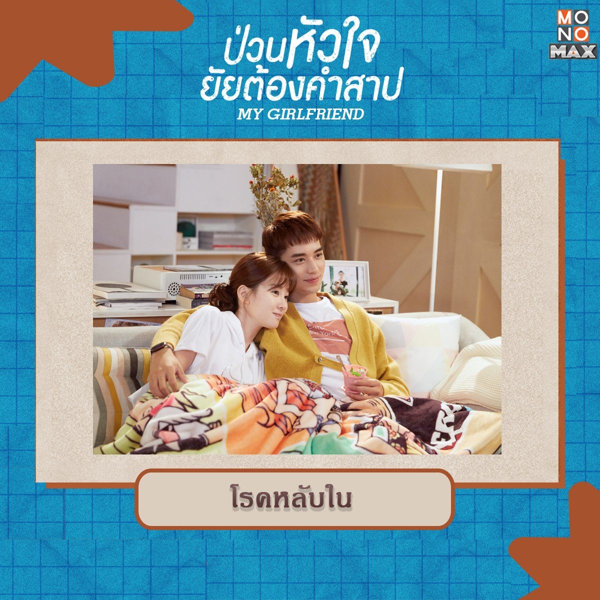 2. โรคหลับใน เป็นโรคที่สมมุติขึ้นจากซีรีส์เรื่อง ป่วนหัวใจยัยต้องคำสาป My Girlfriend เรื่องราวของ ติงเสี่ยวหยิว (เฉียวซิน) นางเอกของเรื่องที่มีอาการของโรคหลับใน เพราะเธอจะเผลอหลับทุกครั้งเมื่อหัวใจเต้นเกิน 109 ครั้ง/ นาที อาการของโรคนี้ถ้ามีอยู่จริงถือว่าอันตรายมากๆเลยล่ะ