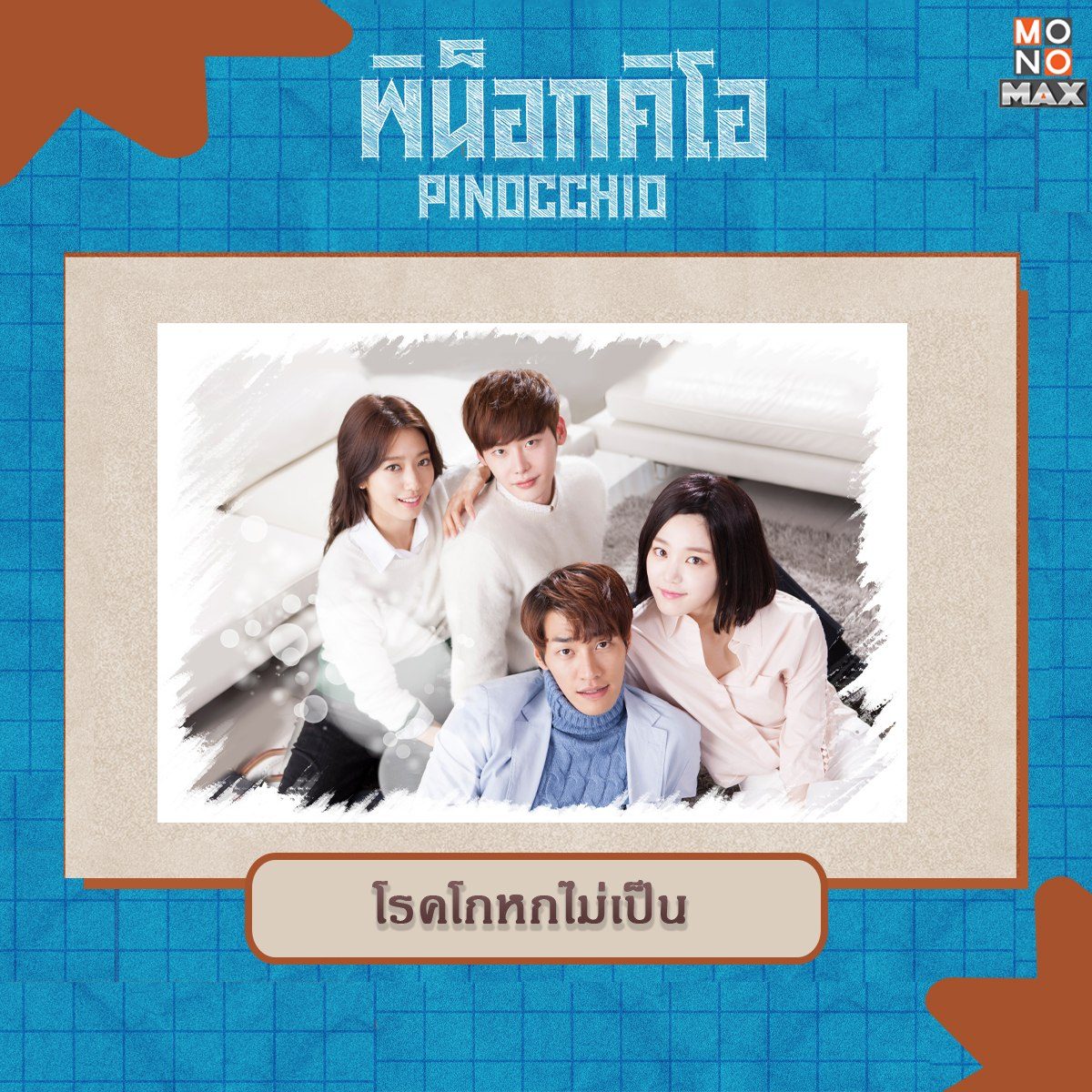 7. โรคโกหกไม่เป็น โรคสมมุติจากซีรีส์เรื่อง พิน็อกคิโอ Pinocchio ชเวอินฮา (พัคชินฮเย) เด็กสาวที่เกิดมาพร้อมโรคพิน็อกคิโอ ทำให้ไม่สามารถพูดโกหกใครได้ เพราะทุกครั้งที่เขาพูดโกหก เขาจะมีอาการสะอึก ทำให้คนอื่นจับได้อยู่เสมอ