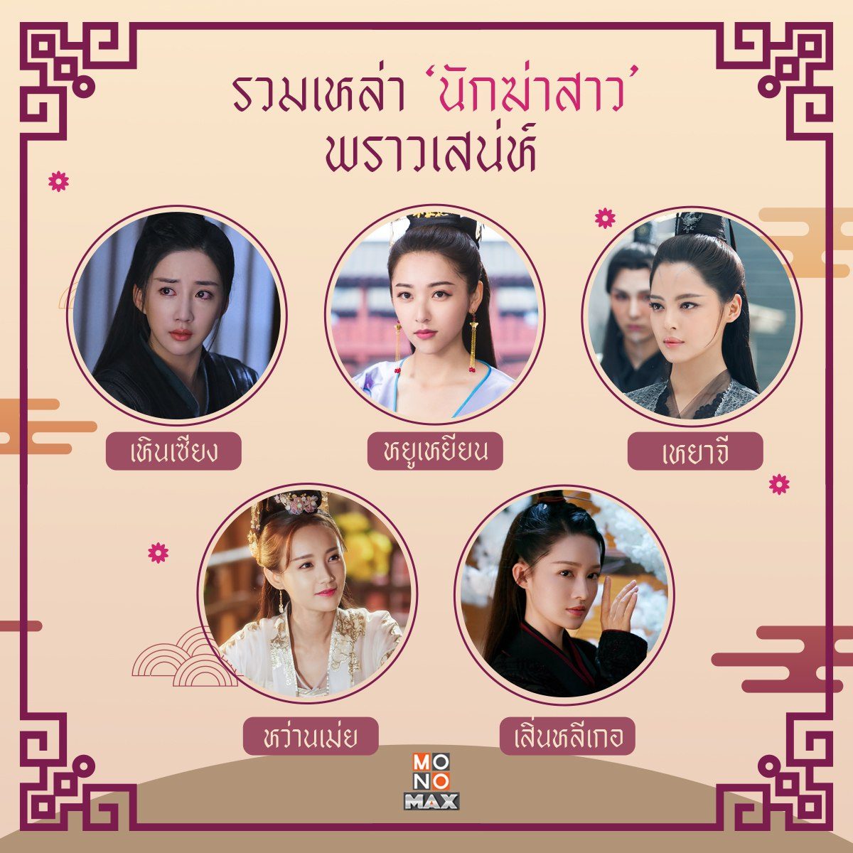 พาส่องสาวงามจากซีรีส์จีน ผู้ที่ถูกขนานนามว่าเป็น 'นักฆ่า'... 5 สาวสวยสังหาร ที่ไม่ได้แปลว่าสวยจนทำคนดูแทบหยุดหายใจ แต่พวกเธออาจฆ่าคุณให้ตายได้จริงๆ!!! จะมีนักฆ่าสาวจากเรื่องใดกันบ้าง ตามไปเช็คและระวังหัวใจของคุณไว้ให้ดี ติดตามซีรีส์พากย์ไทยของเหล่าสาวพราวเสน่ห์ได้ทุกเรื่องที่ MONOMAX