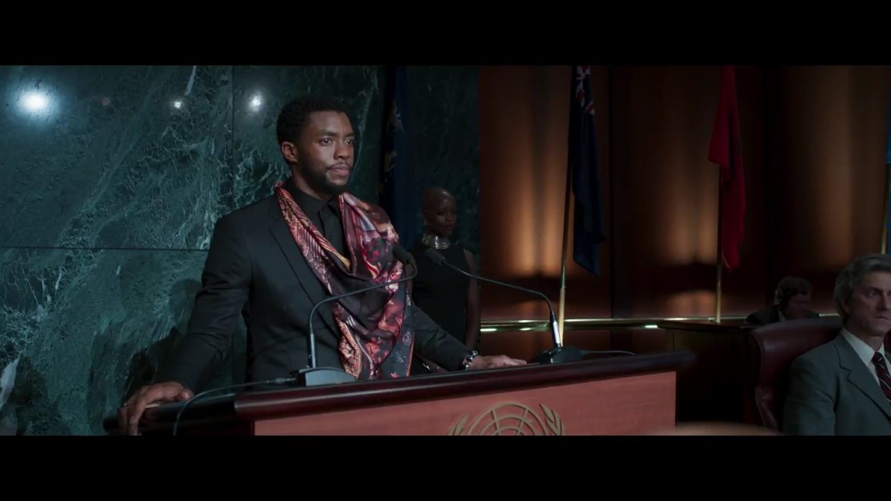 ในฉากนี้ Black Pantherน่าจะมาปรากฎตัวในฐานะกษัตริย์วาคานดา โดยมีองค์รักษ์กลุ่มโดร่ามิลาเจ้ ยืนอารักขาอยู่ไม่ห่าง ซึ่งน่าจะเป็นเหตุการณ์ต่อเนื่องหลังจากที่เกิด Civil War นั่นเอง