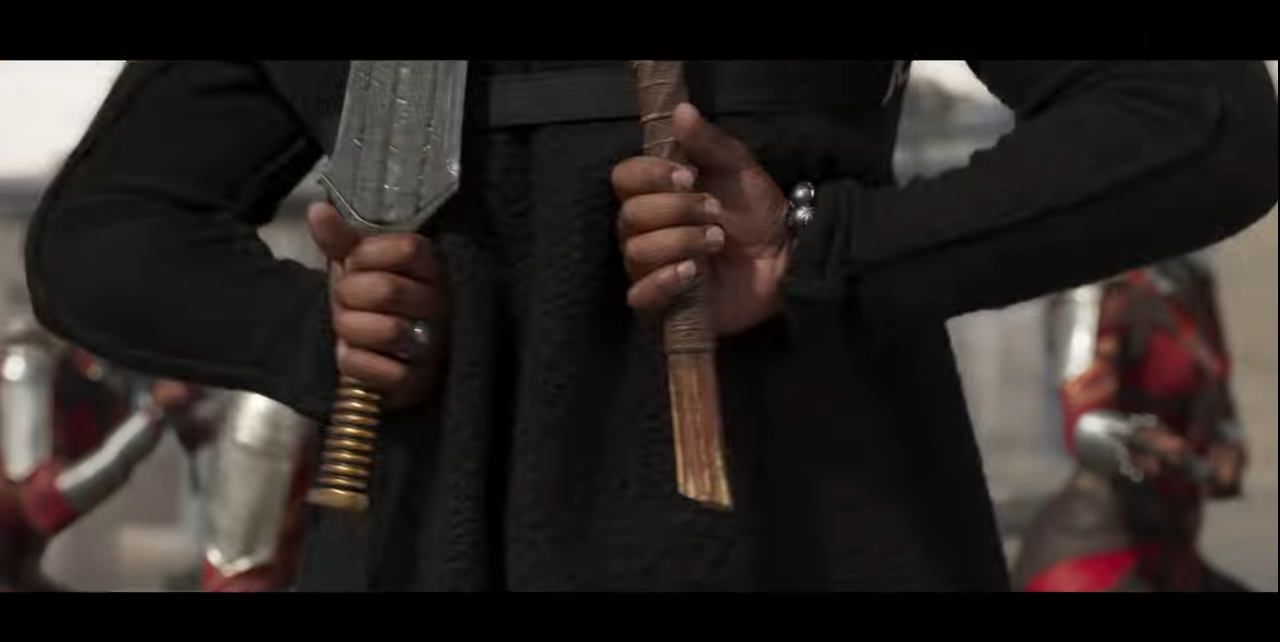 จุดน่าสังเกตในตัวอย่างคือ มีตัวละครหลายคนที่ใส่กำไล ซึ่งดูคล้ายกับ "Wakanda Tech Bracelet" เทคโนโลยีสุดล้ำในคอมมิค ส่วนในภาพยนตร์นั้นอาจมีไว้สำหรับติดต่อสื่อสาร หรืออาวุธก็เป็นได้