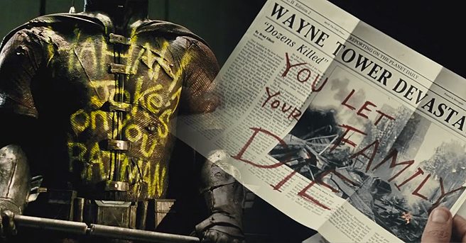 "ไอเดียก็คือการสูญเสียและการเสียสละ เขาต้องเสียสละทุกสิ่งทุกอย่างเพื่อที่จะกลายมาเป็นแบทแมน เขาไม่มีชีวิตนอกถ้ำเลย ผมจึงคิดว่าการใส่โรบินที่ตายไปแล้วจะช่วยให้เราเข้าใจเรื่องที่ผ่านมาของแบทแมนได้นิด ๆ หน่อย ๆ"