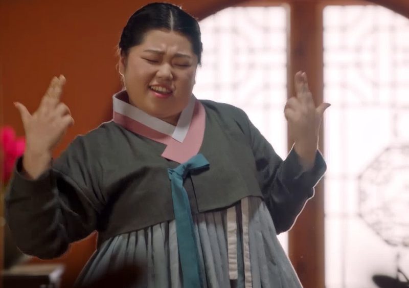 ในยุคสมัยนั้นพ่อสื่อโกยองซูก็มีแว่นกันแดดมาใช้แล้ว แต่งด้วยลูกปัดสีสันจัดๆ ให้ดูโดดเด่นสะดุดตา แต่ระวังหน่อยเวลาใส่อาจจะมืดจนมองอะไรไม่ค่อยเห็น แต่สายแฟชั่นอย่างโกยองซูเน้นสวยงามไม่เน้นใช้งานอยู่แล้ว!
