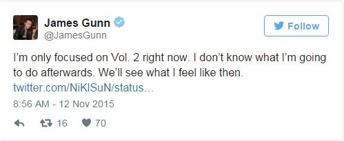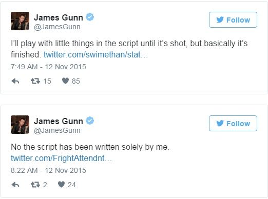 เจมส์ กันน์ ผู้กำกับจอมโซเชี่ยลได้เปิดเผยรายละเอียดเกร็ดเล็กเกร็ดน้อยของหนังซุปเปอร์ฮีโร่กู้จักรวาล Guardian of the Galaxy 2 ผ่านทวิตเตอร์ส่วนตัวผ่านการตอบคำถามกับแฟน ๆ ถึงประเด็นต่าง ๆ