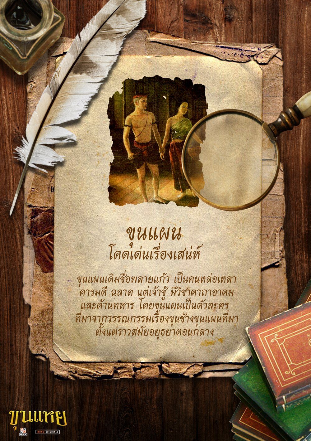 ขุนแผน "โดดเด่นเรื่องเสน่ห์" นามเดิมชื่อพลายแก้ว หล่อเหลา คารมดี เจ้าชู้ มีวิชาอาคม มาจากวรรณคดีขุนช้างขุนแผน