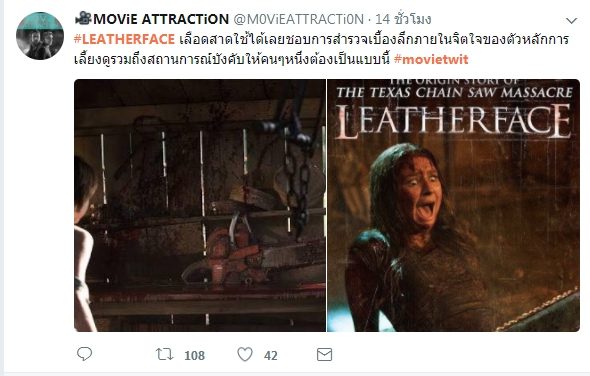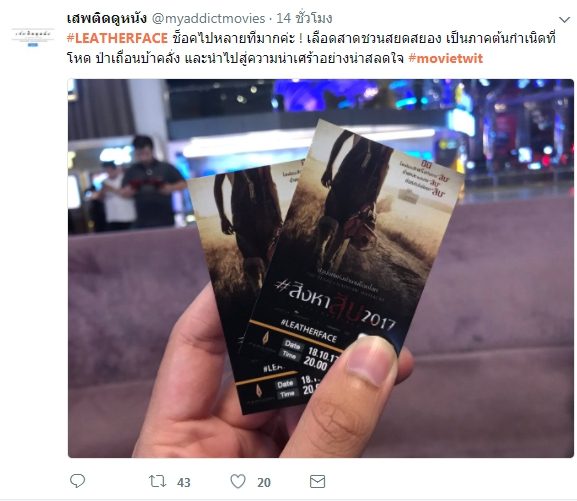 โดย 'Leatherface สิงหาสับ2017' ตอนนี้ได้เรต ฉ.20+ เป็นที่เรียบร้อย ทำให้ต้องมีการตรวจบัตรประชาชนก่อนซื้อบัตรชมภาพยนตร์ เข้าฉายแล้ววันนี้ ใครอยากไปพิสูจน์ความโหดขนานแท้ต้องห้ามพลาด !