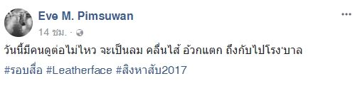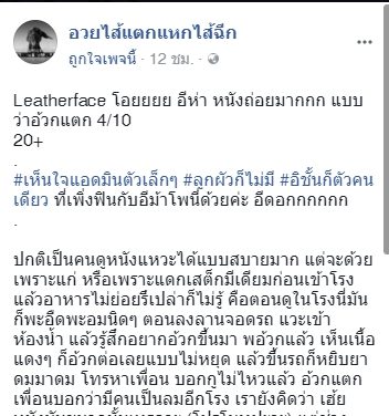 เท่าที่ทราบแน่นอนมีผู้ชม 2 ท่าน ที่อ้วกแตกจากการชมภาพยนตร์ 'Leatherface สิงหาสับ2017' โดยท่านแรกถึงขนาดทนดูจนจบไม่ไหว อ้วกแตกจนแทบเป็นลม ส่วนอีกท่านคือแอดมินเพจชื่อดังแห่งยุค อวยไส้แตกแหกฉีก ที่พอชมภาพยนตร์จบก็ถึงกับอ้วกแตกในห้องน้ำ