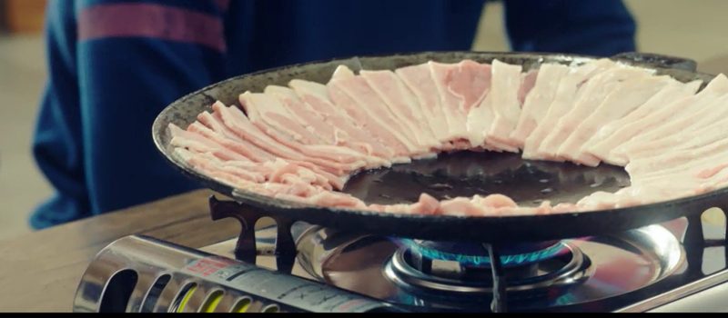 เบคอนย่างบนฝาหม้อ กับไชเท้าปรุงรสใส่ซอสเผ็ดกับซอสมะเขือเทศคลุกกัน เมนูสุดอร่อยที่คูแทยองพาเพื่อนชมรมฟุตบอลไปกินกันเนื่องในโอกาสก่อตั้งชมรมฟุตบอล ร้านปิ้งย่างร้านนี้เป็นร้านเล็กๆ ตั้งอยู่ในจังหวัดคยองกีโด เขตทงดูชอน สนนราคาอยู่ที่ชุดเล็ก 25,000 วอน ชุดใหญ่ 35,000 วอน