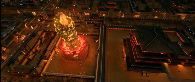 กิจกรรมส่งท้ายเทศกาลยิ่งใหญ่แห่งปี ก็คือรับชมความงามของโคมไฟยักษ์ต้าเซียน ซึ่งจะจุดในปลายยามโฉ่วที่ฮ่องเต้จะเสด็จขึ้นหอฮวาเอ้อเพื่อจุดไฟ หอโคมนี้สูงร้อยห้าสิบเซี๊ยะ กว้างยี่สิบสี่ห้อง ด้านนอกติดแพรหลากสี โครงสร้างซับซ้อน ทันทีที่จุดไฟจะหมุนไม่หยุดเปล่งแสงหลายลี้ เป็นสิ่งมหัศจรรย์ที่ไม่เคยมีมาก่อน