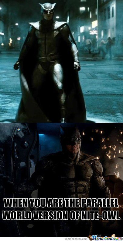 และด้วยลักษณะชุดที่คล้ายกับ ไนท์ อาวล์ ตัวละครจากเรื่อง Watchmen ที่มีแว่นตาดำเหมือนกัน ทำให้ชาวเน็ตหลายคนอดไม่ได้ที่จะแซวถึงเรื่องนี้ แต่อย่างไรก็ตามไมเคิลก็ได้บอกถึงสาเหตุที่แบทแมนต้องใส่แว่นดำเอาไว้ว่า "แบทแมนต้องขับยานพาหนะคันใหม่และนั่นก็ทำให้เขาต้องสวมแว่นดังกล่าว"
