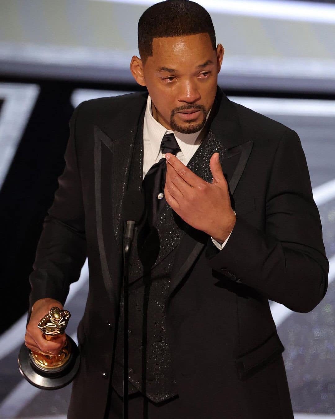 ความเดือดพีคไปอีกขั้นเพราะการประกาศรางวัลต่อจากนั้น ปรากฎว่าวิลล์ สมิธ ได้รับรางวัลนักแสดงนำชายยอดเยี่ยม จากภาพยนตร์ King Richard เขาได้ขึ้นไปกล่าวบนเวที ขอโทษที่แสดงการกระทำที่ใช้ความรุนแรงและกล่าวว่า " ริชาร์ด วิลเลียมส์ (บทบาทของเขาใน King Richard) เป็นคนที่ปกป้องครอบครัวเสมอ "