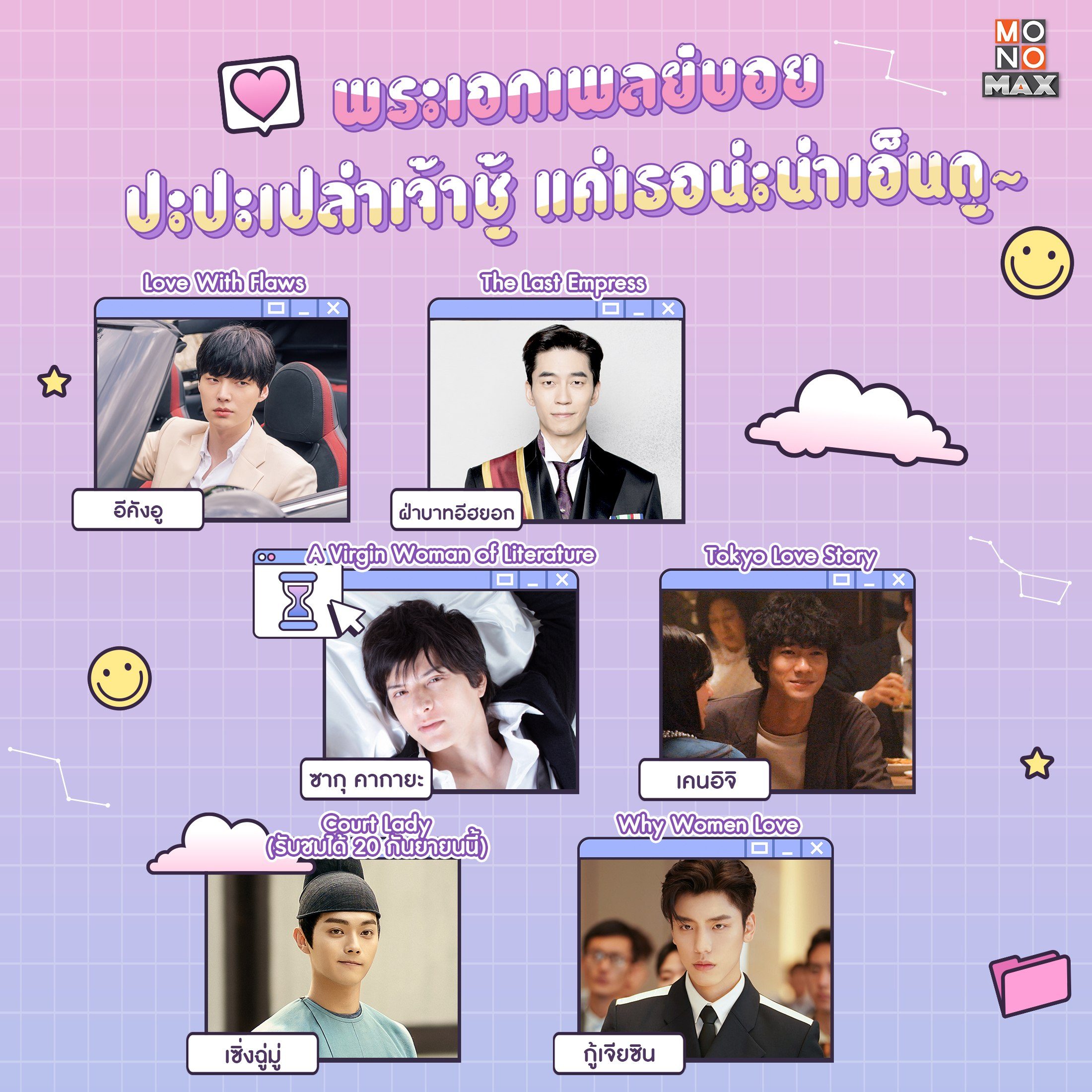 ก่อนจะเป็นแมวเหมียว พวกเขาเหล่านี้เคยเป็นเสือกันมาก่อน! วันนี้เราจึงรวบรวมบรรดาพระเอกที่เป็นไอ้ต้าวเจ้าชู้มาให้ได้ชมกัน งานนี้พระเอกของเราคงอยากจะบอกว่า "ไม่ได้เจ้าชู้ แค่ก่อนจะเจอเธอเราเนื้อคู่เยอะ~" | ติดตามผลงานซีรีส์พากย์ไทย-ซับไทยของพวกเขาได้ที่ MONOMAX