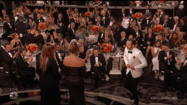 หลังจากพิธีกรประกาศผลรางวัลนักแสดงนำชายยอดเยี่ยม สาขาภาพยนตร์มิวสิคัลหรือคอมมเมดี้ ให้กัน ไรอัน กอสลิ่ง จากหนังเรื่อง La La Land ให้ขึ้นไปรับรางวัล ก็เกิดเหตุการณ์สุดช็อคคาจอแก้วเนื่องจากไรอัน เรย์โนลด์ นักแสดงนำชายอีกคนที่เข้าชิงจากเรื่อง Deadpool ที่จู่ ๆ ได้ไปจูบปากกับ แอนดรูว์ การ์ฟิลด์ นักแสดงนำชายที่เข้าชิงสาขาดราม่าจากเรื่อง Hacksaw Ridge และเคยรับบทสไปเดอร์แมน