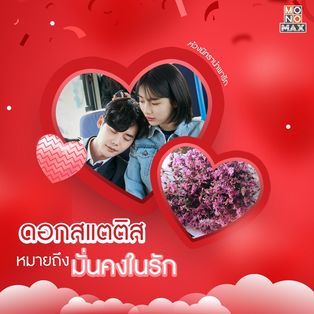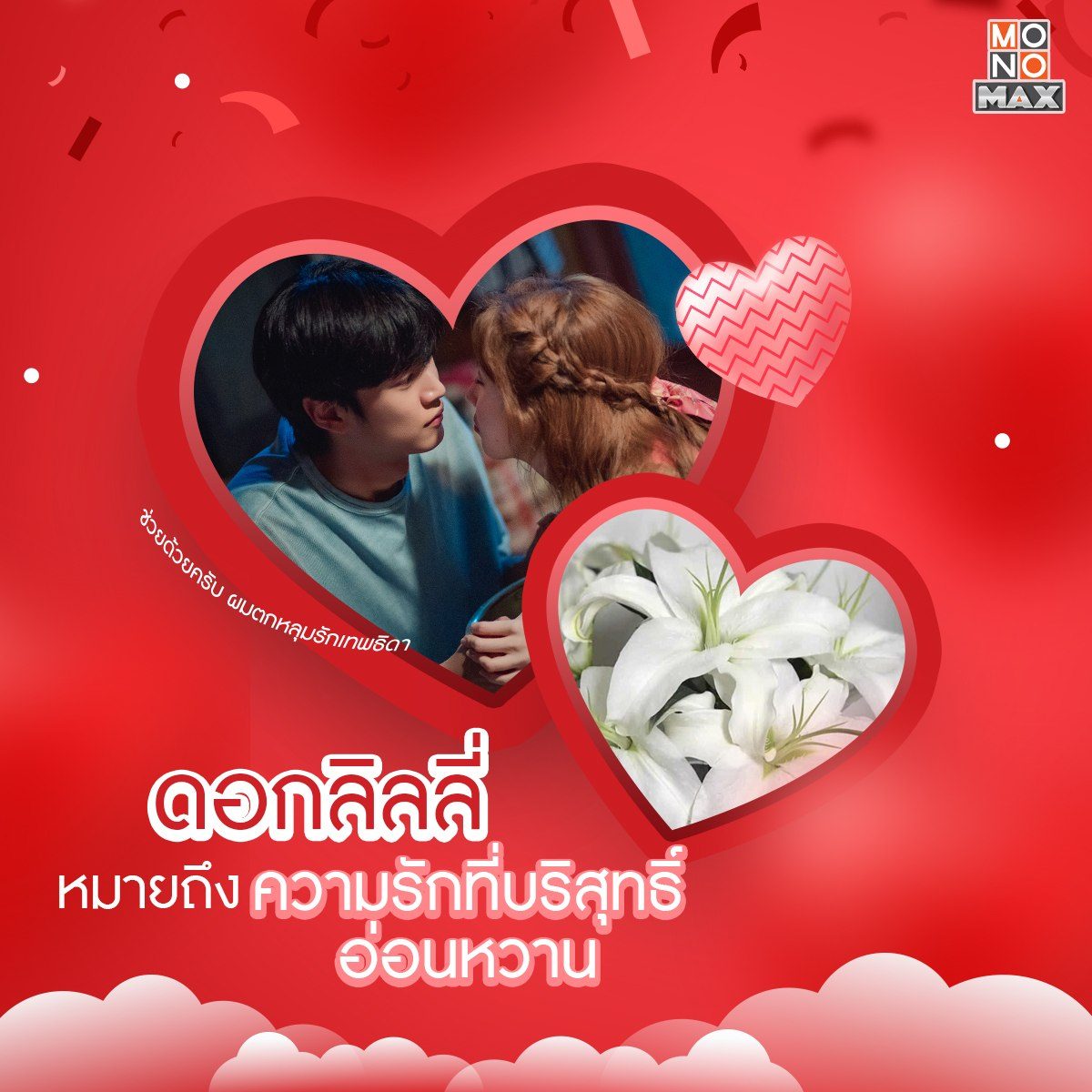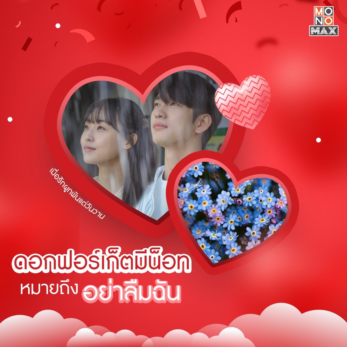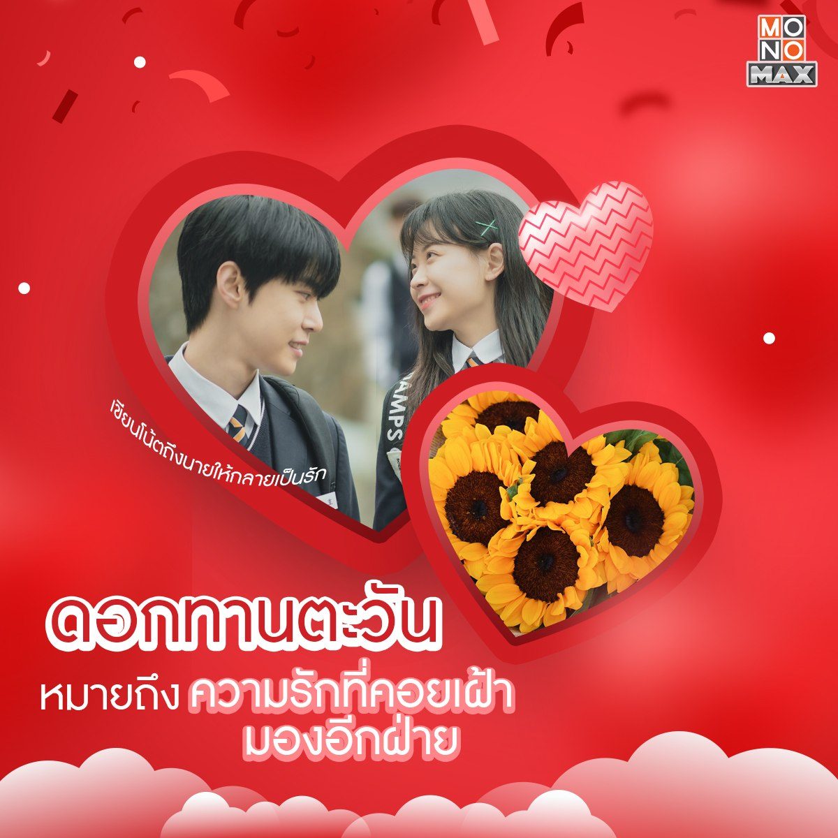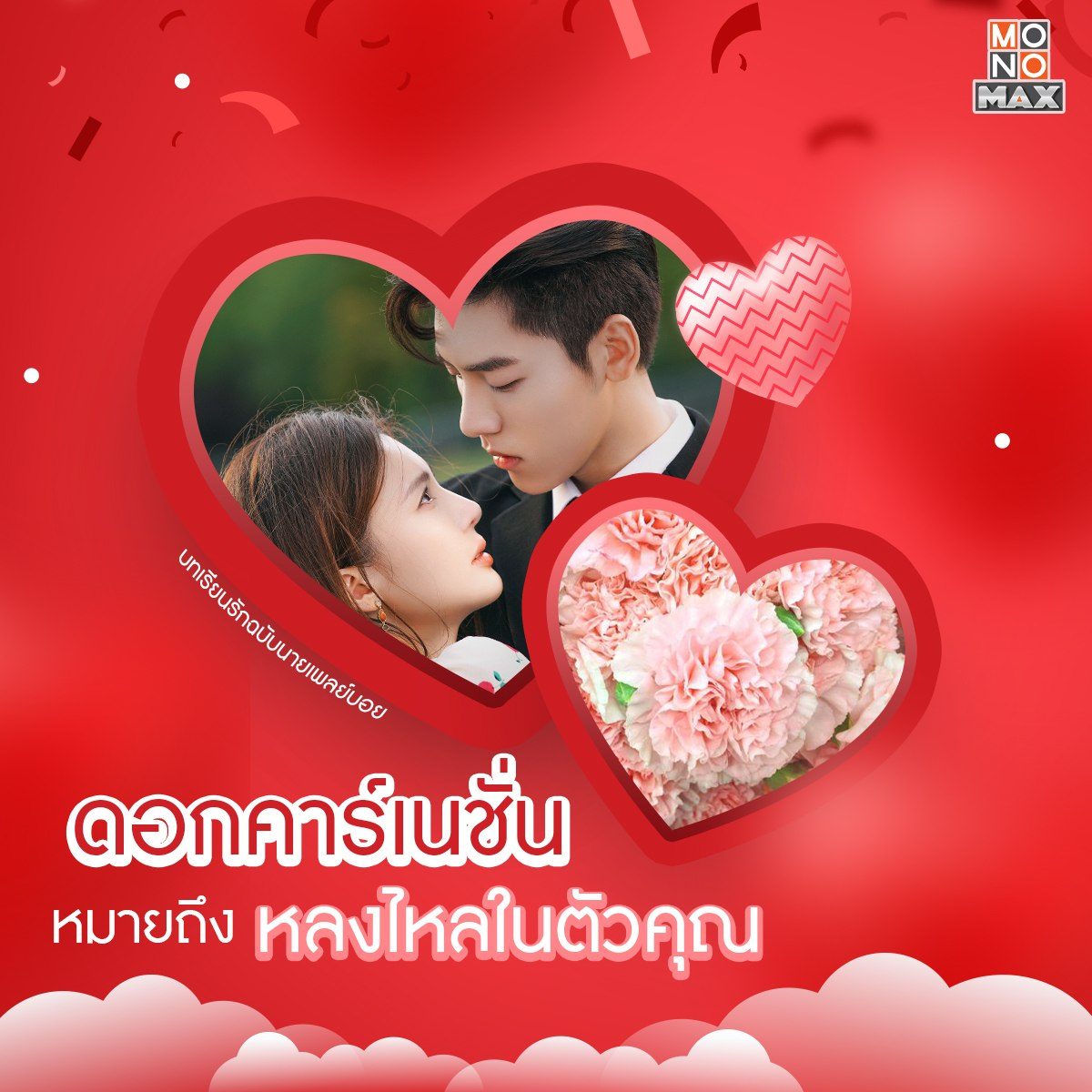 สวัสดีเดือนแห่งความรัก~ ช่วงนี้มองไปทางไหนก็มีแต่สีชมพูไปหมด และด้วยเดือนนี้เป็นเดือนที่คนมีคู่ต่างเฝ้ารอคอยจะมอบดอกไม้ให้กัน เราจึงอยากนำเสนอความหมายของดอกไม้แสนน่ารัก พร้อมกับแนะนำซีรีส์ดีๆ ที่บอกเล่าเรื่องราวคล้ายคลึงกับความหมายของดอกไม้นั้นๆ ให้ทุกคนได้ชมกัน ตามมาดูกันดีกว่าว่าจะมีเรื่องอะไรบ้าง แล้วอย่าลืมว่าติดตามซีรีส์แบบฉบับพากย์ไทย-ซับไทยได้ทุกเรื่องที่ MONOMAX