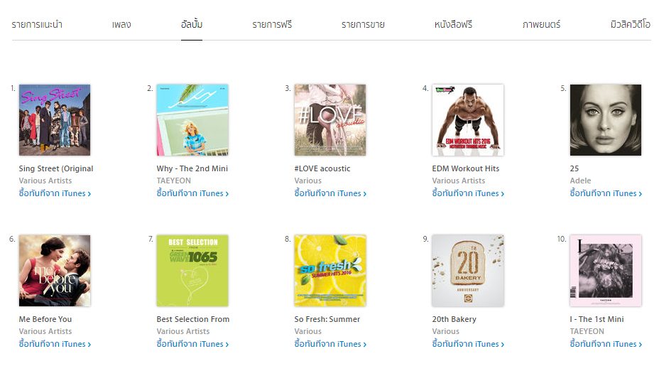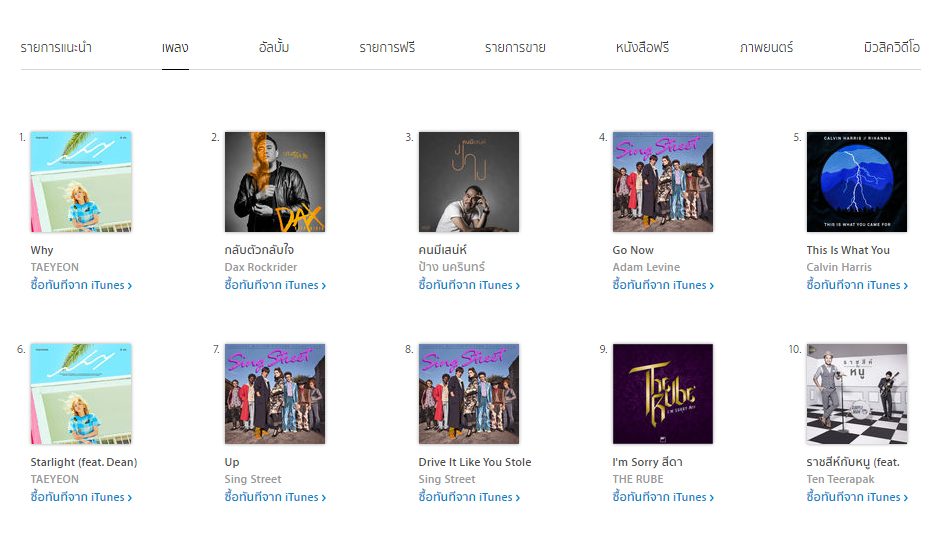 เข้าฉายไปแล้วเมื่อสัปดาหฺ์ที่แล้วสำหรับ Sing Street รักใครให้ร้องเพลงรัก ภาพยนตร์แนวดนตรียุค 80 ที่กวาดคำชมไปได้อย่างล้นหลาม ซึ่งพอภาพยนตร์เรื่องนี้เข้าฉายก็ส่งผลให้อัลบั้ม Sing Street ขึ้นชาร์ตอัลบั้ม 1 ของ iTunes ประเทศไทยอย่างทันที และยังมีเพลงในอัลบั้มทั้งหมด 3 เพลงขึ้นชาร์ต Top 10 ของ iTunes อีกด้วย ได้แก่ Go Now ของ อดัม เลวีน (อันดับ 4), Up (อันดับ 7) และ Drive it Like You Stole It (อันดับ 8)