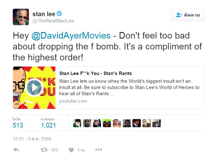 Stan Lee มาเอง! รวมปฏิกริยาฝั่ง Marvel หลังผู้กำกับ Suicide Squad แจกกล้วยใส่
