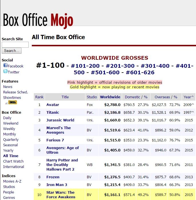 เรียกได้ว่ามาแรงแซงทางโค้งของแท้ สำหรับภาพยนตร์ Star Wars: The Force Awakens เพราะเข้าฉายไปได้เพียง 2 สัปดาห์ ก็ทำลายสถิติด้านรายได้ไปทั่วโลก และตอนนี้ยังมีลุ้นเป็นภาพยนตร์ที่ทำรายได้รวมสูงที่สุดในโลกไปแล้ว ซึ่งนอกจะประสบความสำเร็จทางด้านรายได้อย่างท่วมท้น ภาพยนตร์สงครามต่างดาวภาคล่าสุดก็ยังกวาดคะแนนวิจารณ์ไปได้มากมายไม่แพ้รายได้แม้แต่น้อย
