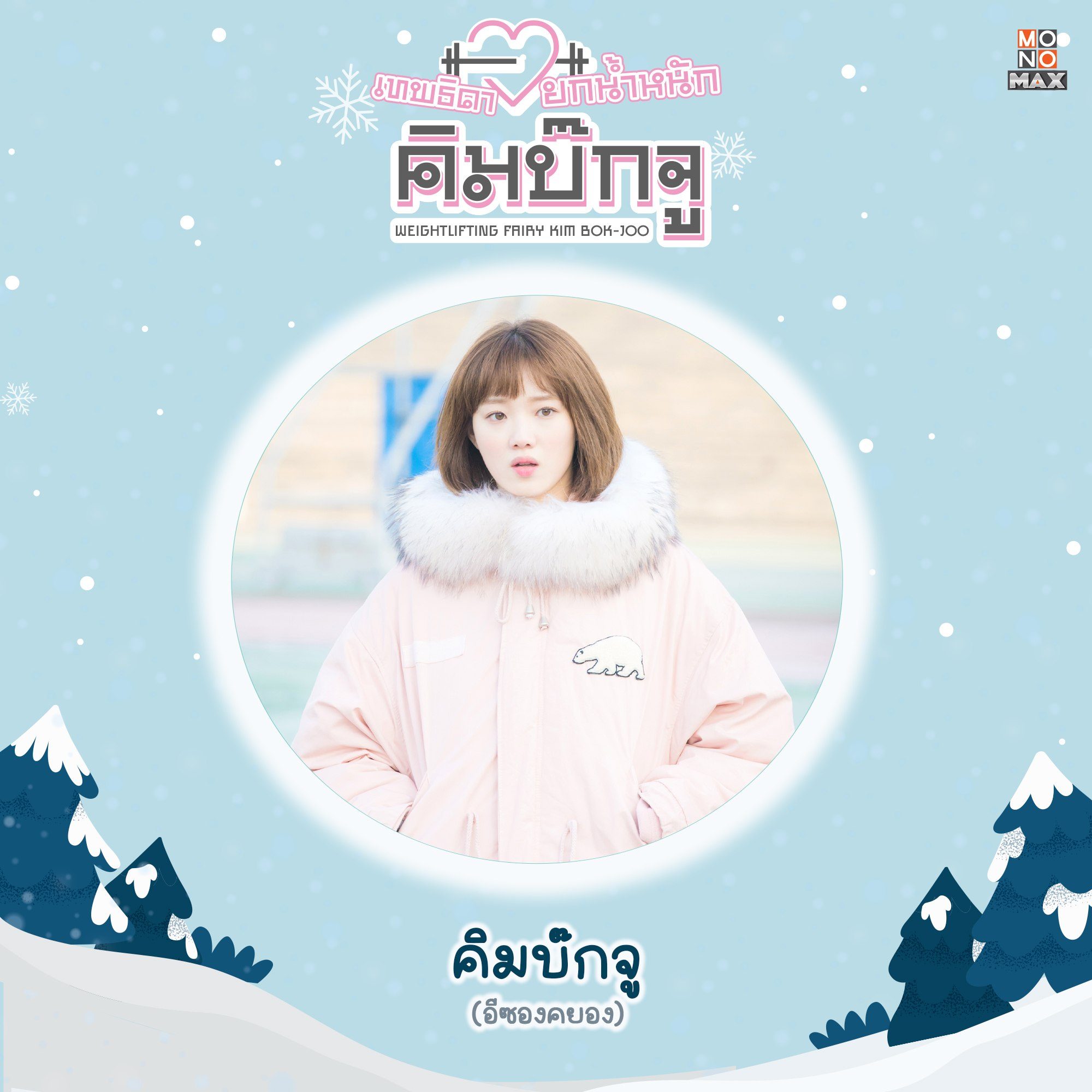 คิมบ๊กจู (อีซองคยอง) | สาวน้อยนักกีฬายกน้ำหนักที่มีบุคลิกแสนห้าว เธอมากับเสื้อโค้ทกันหนาวสีชมพูสดใสโดยมีขนเฟอร์เป็นกิมมิคเล็กๆอยู่ที่ฮู้ด ซึ่งใส่แล้วให้ลุคสบายๆในวันที่อากาศหนาวจัด