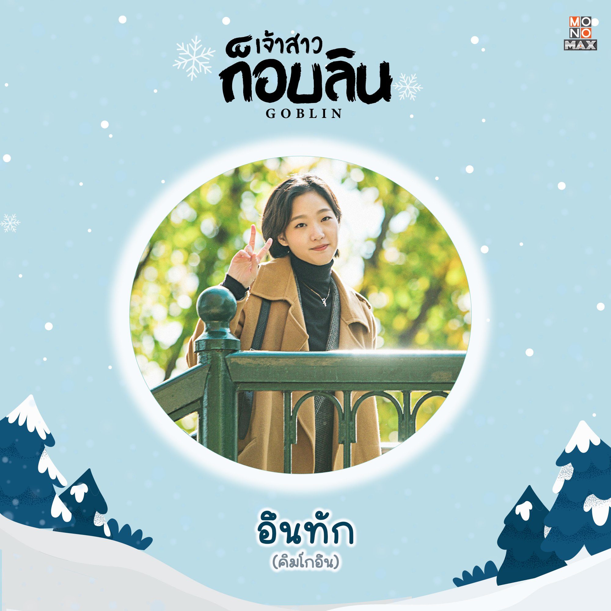 อึนทัก (คิมโกอึน) | เจ้าสาวก็อบลินสุดน่ารักด้วยรอยยิ้มอันแสนสดใสวัย 19 ปี เธอมากับเสื้อโค้ทสีน้ำตาลแนวเอิร์ธโทนตัดกับเสื้อคอเต่าสีดำและเครื่องประดับเล็กน้อย ให้ลุคสุขุมดูเป็นผู้ใหญ่