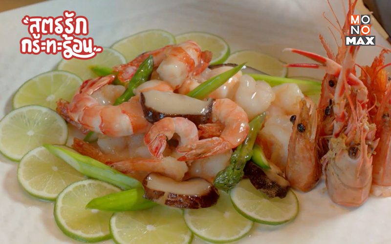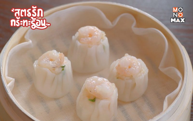 ขนมจีบกุ้งสุดอร่อยที่นำกุ้งทั้งตัวมาห่อด้วยแป้งเกี๊ยวบาง ๆ ขนาดพอดีคำแล้วนำมานึ่งจนสุกหอมน่าทาน