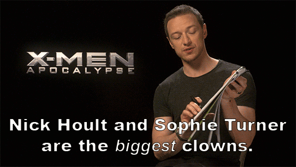 เจมส์ แม็คอะวอย: ใครตลกที่สุดหรอ [ทำท่าคิด] อืมมม สองคนนี้เลย นิค ฮอลท์ (บีสต์) กับ โซฟี เทอร์เนอร์ (จีน เกรย์) ตลกพอ ๆ กัน