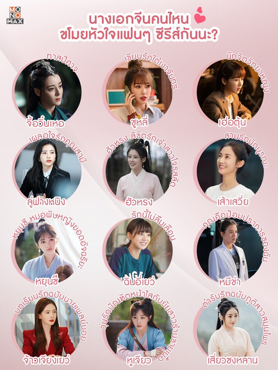 มาดูกันว่านางเอกจีนจากซีรีส์เรื่องไหนบ้างที่ขโมยหัวใจแฟนๆ ซีรีส์ไปแบบเต็มๆ เทให้ทั้งใจเลย รักใครชอบใครอย่าลืมมาตามเก็บผลงานได้ที่ MONOMAX นะคะ