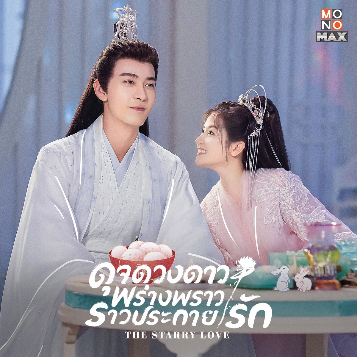 ซีรีส์จีนแนวโรแมนติก-ดราม่า "ดุจดวงดาว พร่างพราวราวประกายรัก The Starry Love" ดัดแปลงมาจากนวนิยายชื่อเดียวกันที่เขียนโดย 'อี๋ตู้จวินหัว' โดยแบบฉบับซีรีส์นี้ได้ผู้กำกับมือทอง 'จูรุ่ยปิน' ที่เคยฝากผลงานไว้ใน "ทาสปีศาจ The Blue Whisper" และ "ป่วนรักมัดใจนักไอซ์สเก็ต Skate into Love" มาคุมงานกำกับในครั้งนี้ อีกทั้งยังเป็นการร่วมงานกับ 'เฉินซิงซวี่' พระเอกมากฝีมือจาก "ตงกง ตำนานรักตำหนักบูรพา Goodbye My Princess" มารับบทเทพเซียนแสนเย็นชา 'เส้าเตี๋ยนโหย่วฉิน' ที่ต้องแต่งงานกับ 'องค์หญิงชิงขุย' (เฮ่อซวนหลิน) บุตรสาวคนพี่แสนอ่อนหวานของราชาแห่งเมืองมนุษย์ เพื่อรักษาความสงบระหว่างดินแดนมนุษย์และสวรรค์ ในขณะเดียวกันบุตรสาวคนน้องผู้เจ้าเล่ห์ แต่แสนฉลาดอย่าง 'องค์หญิงเย่ถาน' (หลี่หลานตี๋) กลับต้องแต่งเข้าแดนปีศาจกับองค์ชายที่จะได้ขึ้นครองเป็นราชันย์ใต้พิภพคนต่อไป แต่แล้วก็เกิดเหตุการณ์ไม่คาดคิดเมื่อเจ้าสาวสลับตัวกัน ทำให้องค์หญิงเย่ถานต้องแต่งเข้าเมืองสวรรค์กับเส้าเตี๋ยนโหย่วฉิน ส่วนองค์หญิงชิงขุยผู้แสนนอบน้อมกลับต้องไปอยู่เมืองปีศาจ โดยมีองค์ชายสาม 'เฉาเฟิง' (เฉินมู่ฉือ) คอยปกป้องอยู่เคียงข้าง ด้วยโชคชะตาฟ้าลิขิตนี้เอง ทำให้พวกเขาทั้งสี่ต่างค่อย ๆ เรียนรู้ซึ่งกันและกัน และความรู้สึกก็เริ่มก่อตัวเป็นความรัก อุบัติรักครั้งนี้จะเป็นอย่างไรต่อไป? ความสัมพันธ์ระหว่างดินแดนจะสงบและแน่นแฟ้นหรือไม่? ติดตามต่อได้ใน "ดุจดวงดาว พร่างพราวราวประกายรัก The Starry Love"