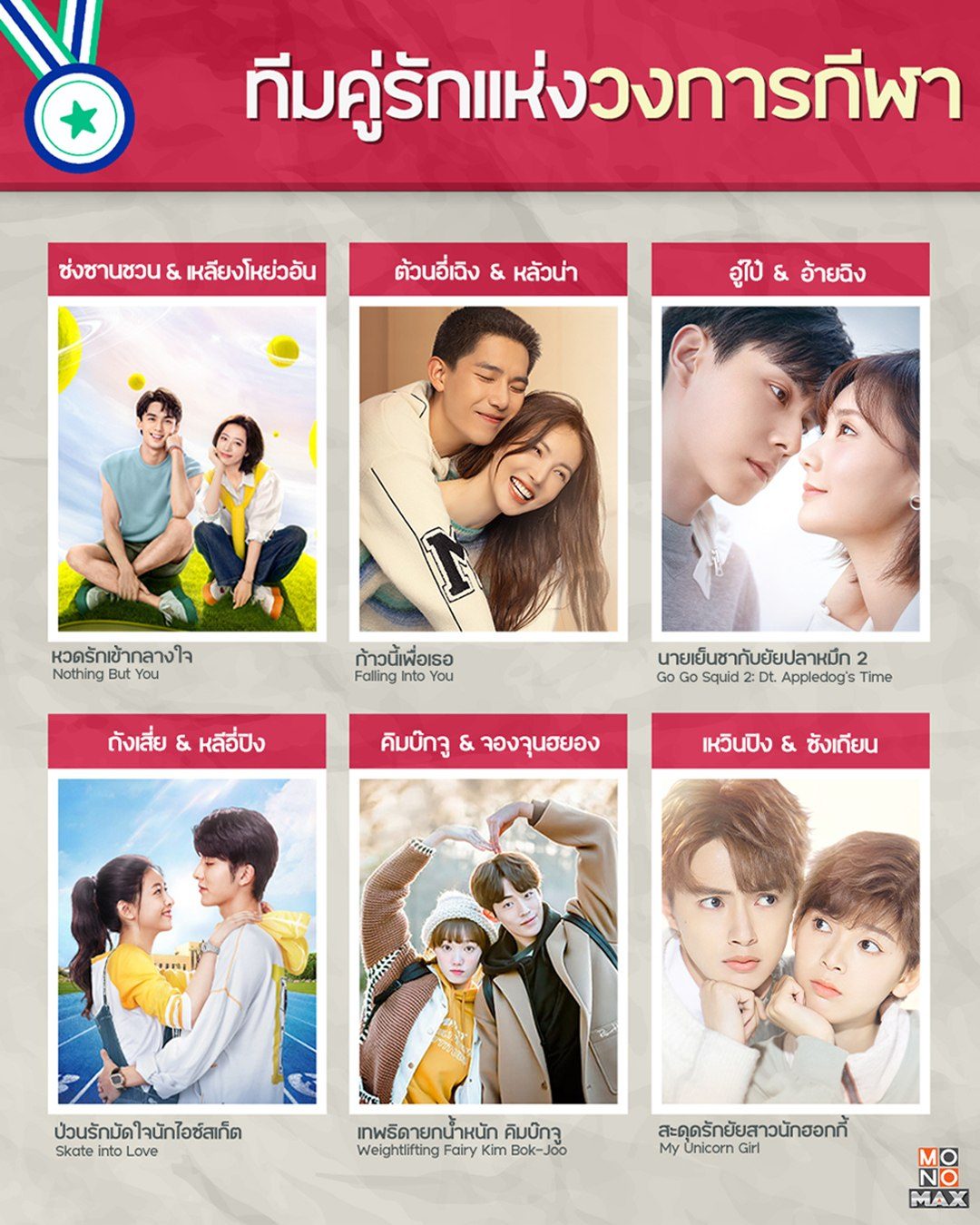 ทำความรู้จักกับ 6 คู่รักแห่งวงการกีฬาที่มีจุดเริ่มต้นจากการทำตามความฝัน ตามมาฟินไปกับโมเมนต์สุดหวานชื่นของพวกเขาได้ในซีรีส์พากย์ไทย-ซับไทยที่ MONOMAX