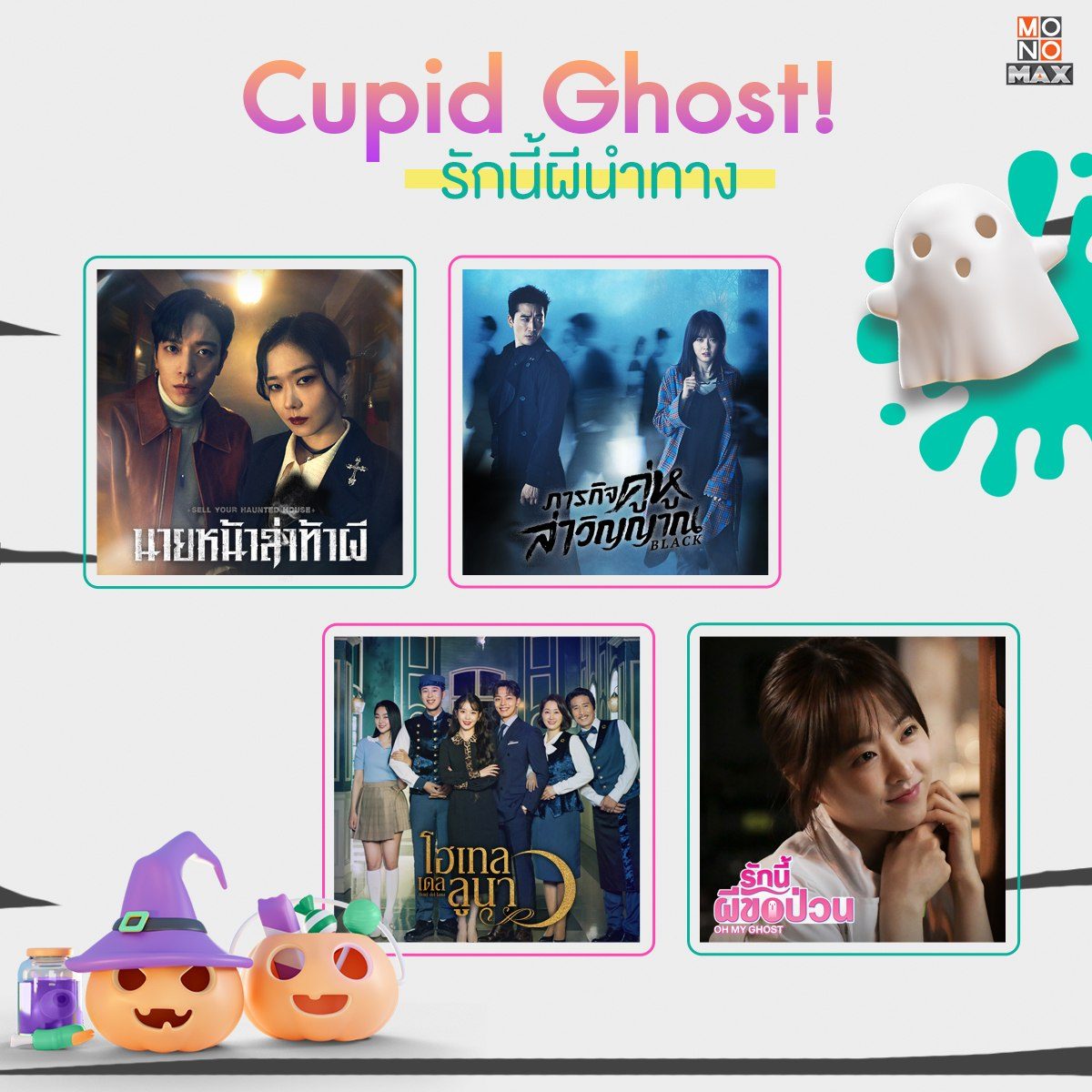 ต้อนรับเทศกาลฮาโลวีน กับลิสต์ซีรีส์เกาหลีโรแมนติกปนความหลอน ที่มีภูตผีเป็นกามเทพสื่อรัก! รวบรวมมาให้แฟนๆ ซีรีส์ดูกันยาวๆ ในคืนวันปล่อยผี จะ Trick หรือจะ Treat ก็อย่าลืมตามมารับชมซีรีส์ดังพากย์ไทยได้ทุกเรื่องที่ MONOMAX