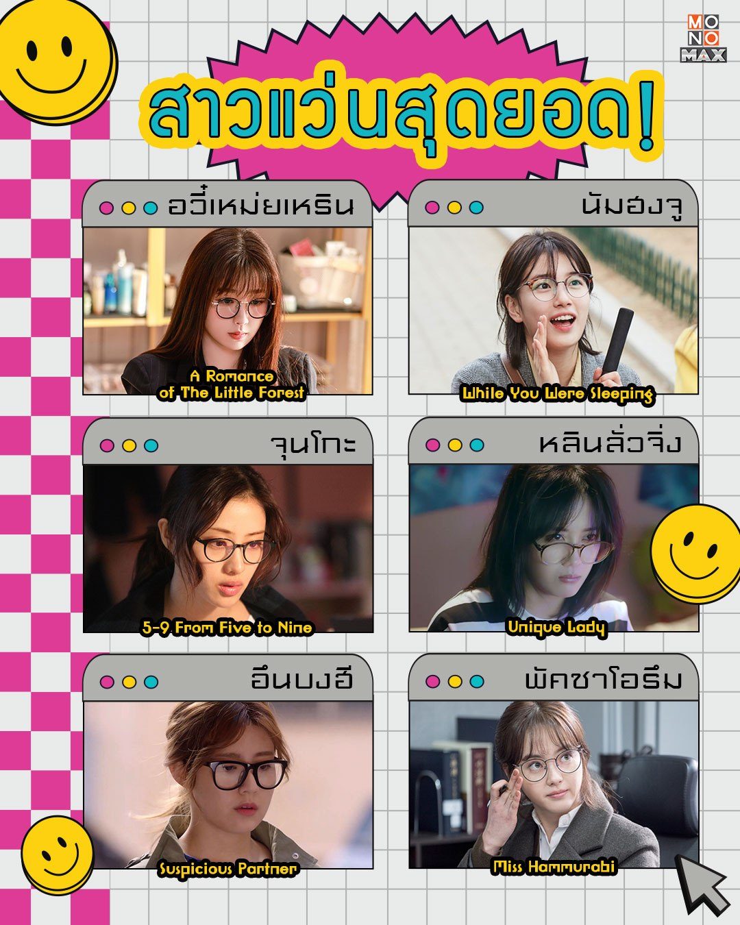 พบ 6 สาวแว่นน่ารัก จาก 6 ซีรีส์ที่จะทำให้ใจผมสลายเลยฮะมุง ตามมาพบความน่ารักของพวกเธอได้ในซีรีส์พากย์ไทยที่ MONOMAX