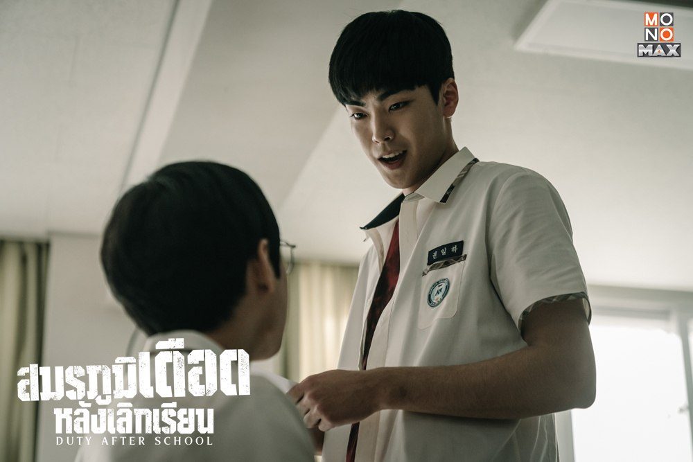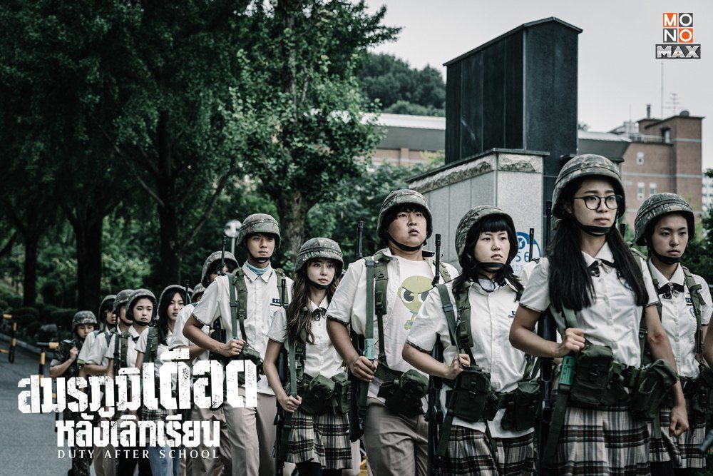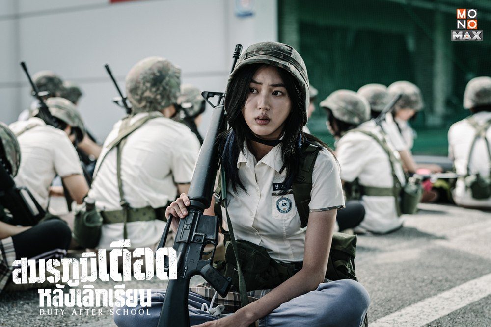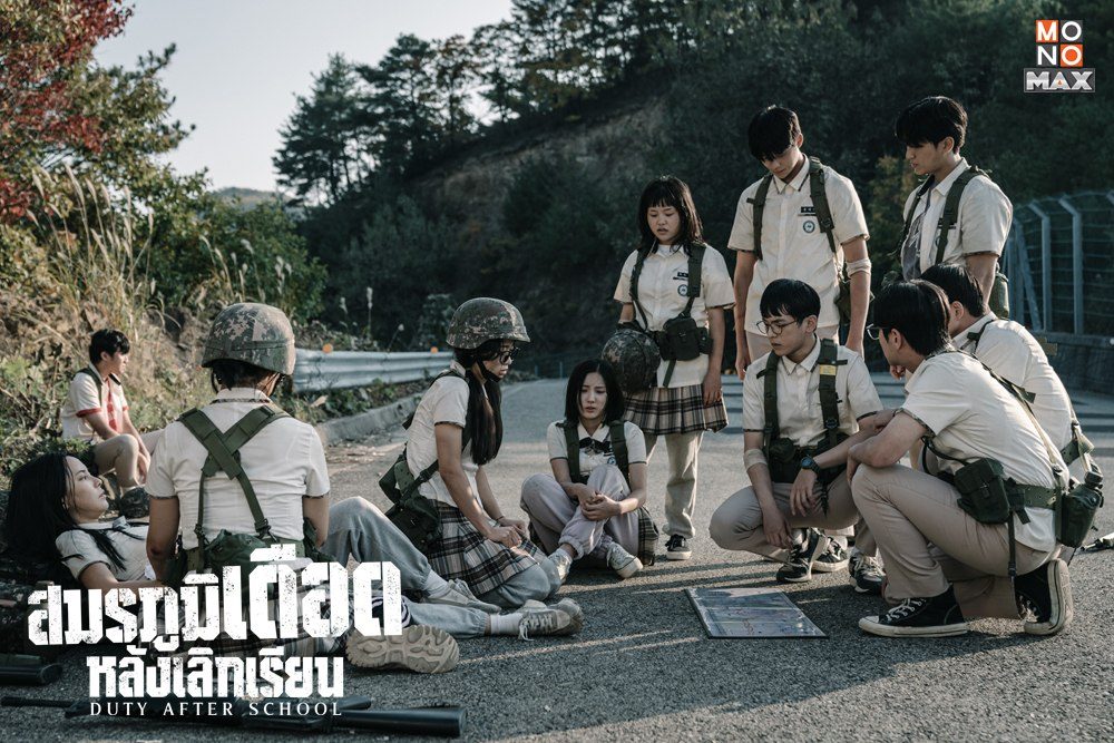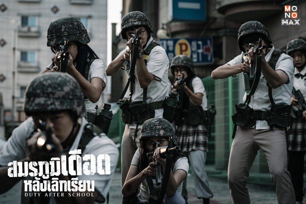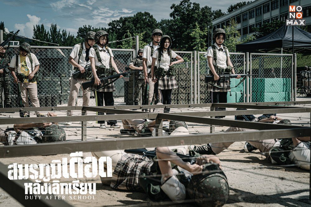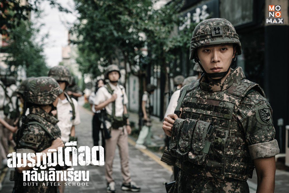 "Duty After School สมรภูมิเดือดหลังเลิกเรียน" ซีรีส์เกาหลีแนวแอ็กชัน-ไซไฟ ที่ถูกสร้างมาจากเว็บตูน "Duty After School" เขียนโดย ฮาอิลควอน โดยที่ซีรีส์จะเล่าถึงวัตถุทรงกลมปริศนาสีม่วงที่ปรากฎอยู่เต็มท้องฟ้า ที่มาของเอเลี่ยนต่างดาวสุดสยองซึ่งอาศัยอยู่ภายในวงกลม ต่อมารัฐบาลเกาหลีได้ประกาศว่าปีนี้จะงดการสอบเข้ามหาวิทยาลัยแต่จะมีการจัดตั้งกองกำลังสำรองแทน โดยนักเรียนชั้น ม.6 ที่มีความประสงค์จะเข้ารับการฝึกในช่วงหลังเลิกเรียน ทั้งวิชาการต่อสู้ เรียนรู้วิธียิงปืน และเอาตัวรอดต่าง ๆ โดยนักเรียนที่เข้าร่วมฝึกในครั้งนี้จะได้รับคะแนนพิเศษในการสอบเข้ามหาวิทยาลัย ซึ่งการฝึกจะอยู่ในความดูแลของร้อยโทอีชุนโฮ (รับบทโดย ชินฮยอนซู) นายทหารผู้เข้มงวด ตรงไปตรงมาพร้อมด้วย พัคอึนยอง (รับบทโดย อิมเซมี) ครูประจำชั้นของนักเรียน ม.6/2 โรงเรียนมัธยมปลายซองจิน ที่มุ่งมั่นตั้งใจจะดูแลปกป้องไม่ให้นักเรียนของเธอได้รับอันตราย เหล่านักเรียนมัธยมซองจินจะสามารถช่วยกันกอบกู้โลกจากสัตว์ประหลาดแสนน่ากลัวนี้ได้หรือไม่ ตามมาเอาใจช่วยพวกเขาต่อได้ในซีรีส์ "Duty After School สมรภูมิเดือดหลังเลิกเรียน"