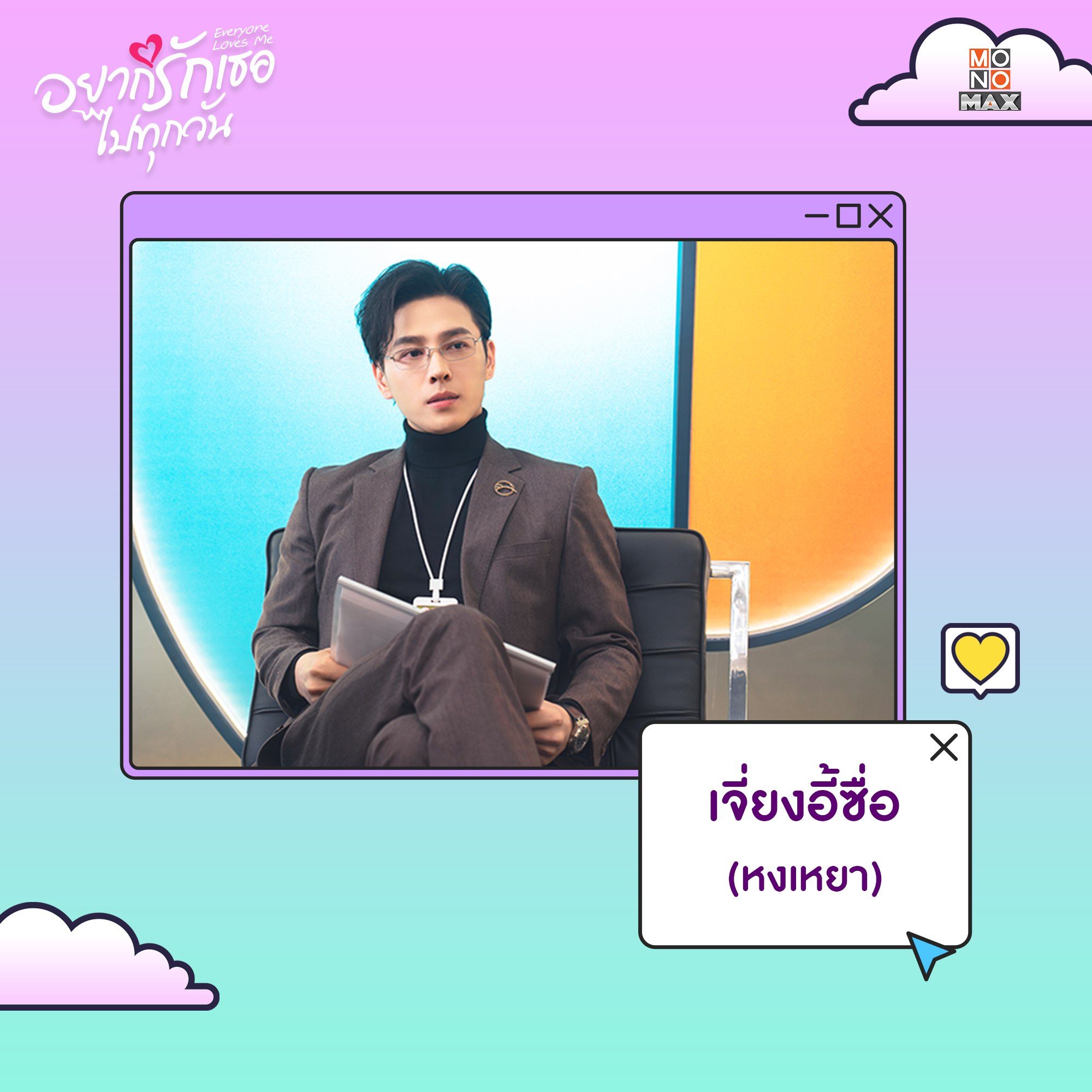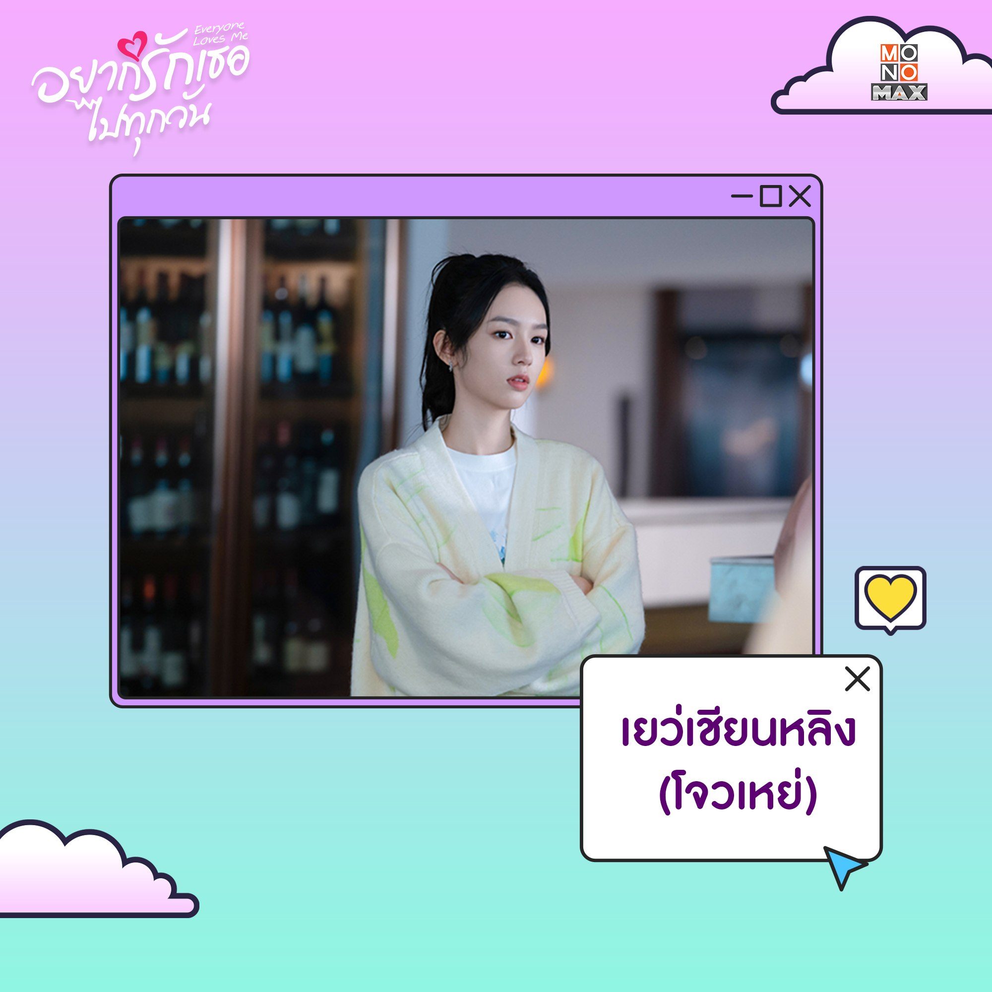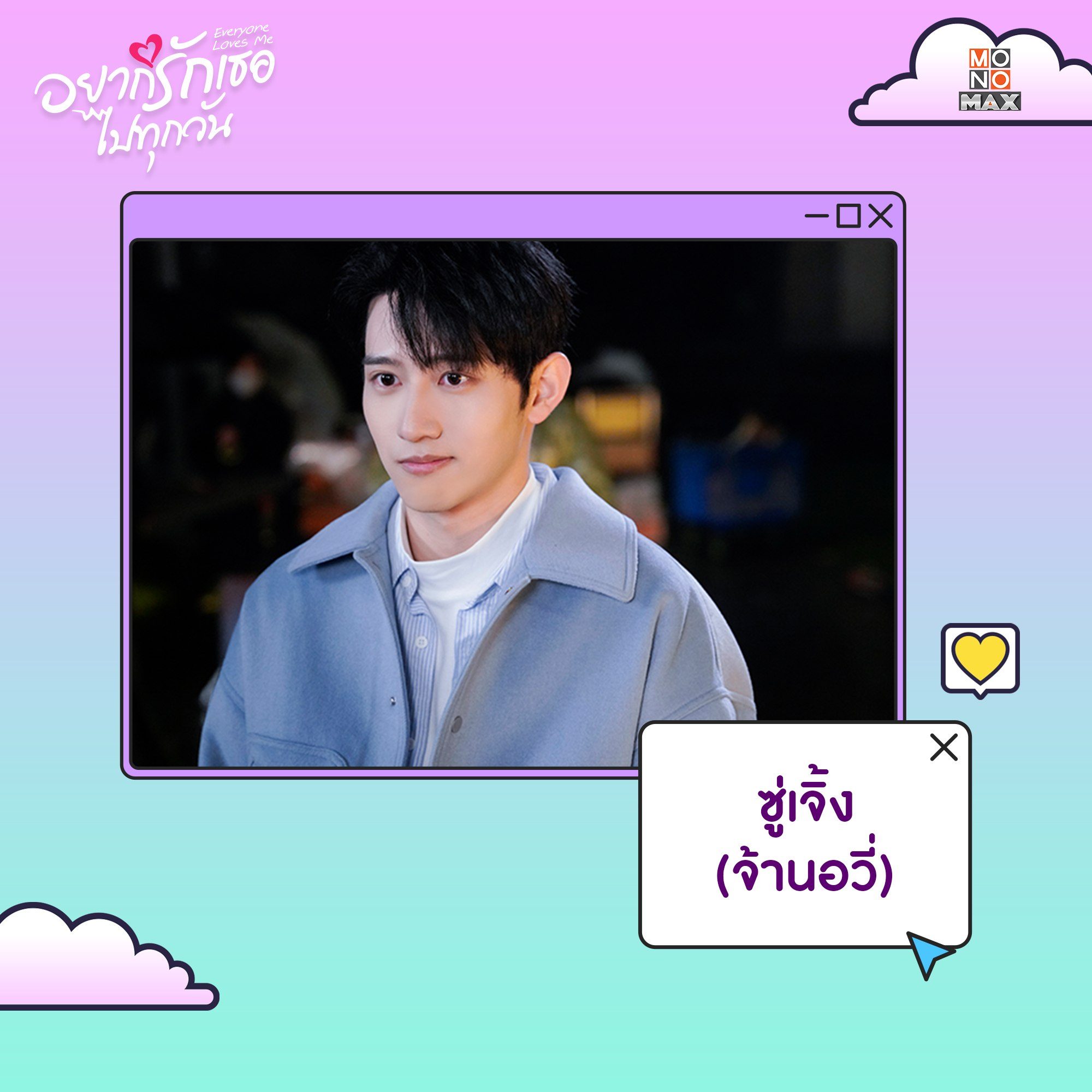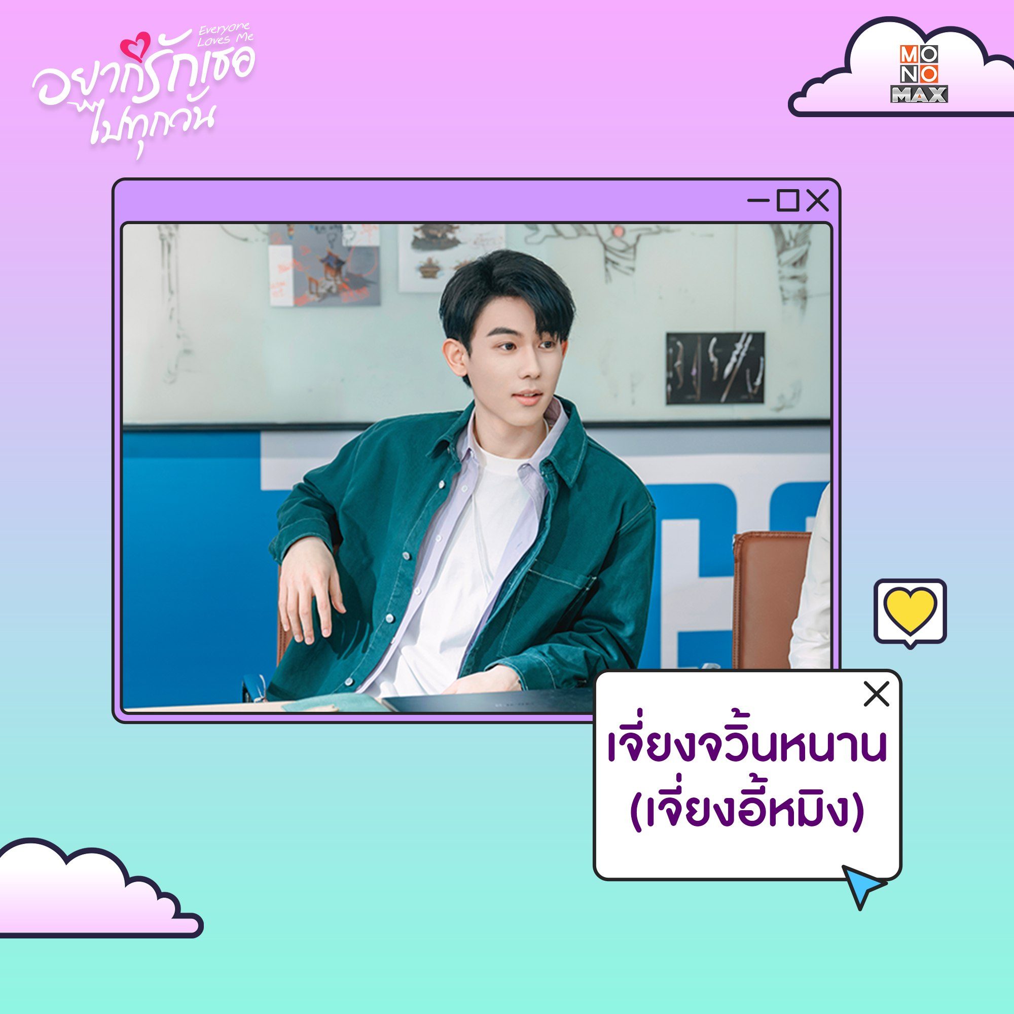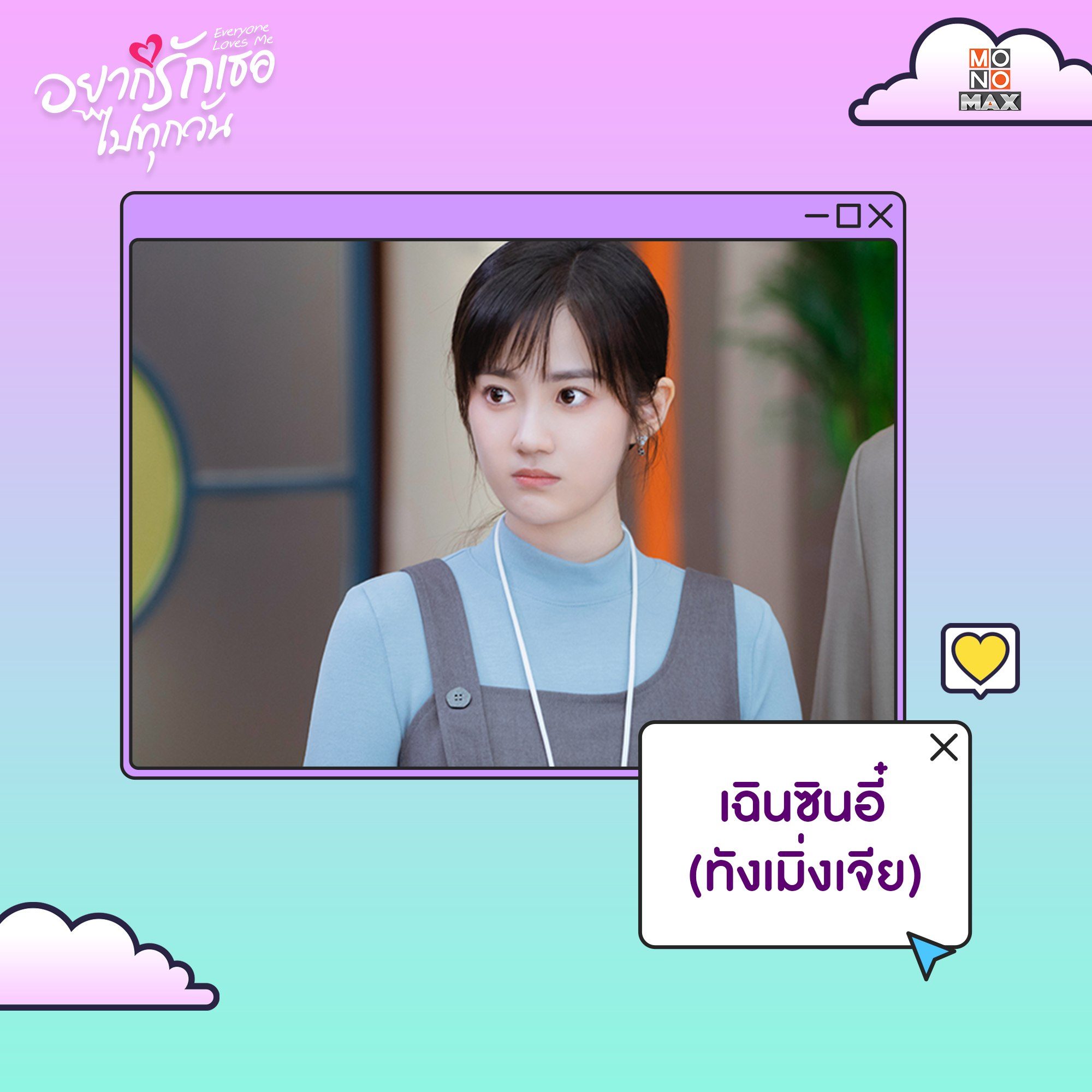ทำความรู้จักตัวละครจากซีรีส์จีน "อยากรักเธอไปทุกวัน Everyone Loves Me" บอกเล่าเรื่องราวความรักสุดอลเวงเมื่อเพื่อนที่แอบปิ๊งในชีวิตจริงคือเพื่อนในเกมออนไลน์ที่ไม่เคยพบเจอกันมาก่อน! นำแสดงโดย โจวเหย่ และ หลินอี ตามมาทำความรู้จักพวกเขาให้มากขึ้นได้ในซีรีส์ อยากรักเธอไปทุกวัน Everyone Loves Me แบบฉบับพากย์ไทย-ซับไทยที่ Monomax