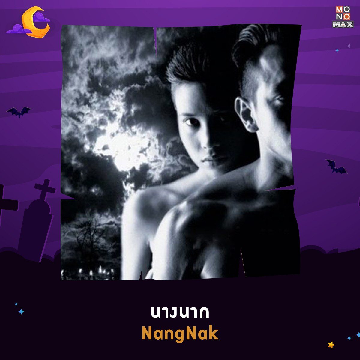 ‘นางนาก NangNak’ ในรัชกาลที่ 4 เกิดสุริยคราสขึ้น ผู้คนแตกตื่นเหมือนกับเป็นเหตุบอกลางร้าย ‘มาก’ (วินัย ไกรบุตร) ถูกเกณฑ์ไปเป็นทหารรบที่ชายแดนปล่อยให้เมียสาวที่กำลังท้องแก่ชื่อ ‘นาก’ (อินทิรา เจริญปุระ) อยู่เพียงคนเดียว นากต้องลำบากตรากตรำทำนาอยู่คนเดียวทั้งๆ ที่ท้องแก่ใกล้คลอด เมื่อเจ็บท้องใกล้คลอด มีลางร้ายนกแสกบินผ่านหลังคาบ้าน นากเสียชีวิตพร้อมลูกขณะคลอด แต่วิญญาณของนางยังคงไม่ไปไหน เวียนอยู่บริเวณบ้านและรอคอยการกลับมาของผัวรัก และเมื่อมากกลับมาผู้คนพยายามบอกมากเกี่ยวกับเรื่องนากที่ตายไปแล้ว นากก็อาละวาดหักคอผู้คนที่พยายามบอกเรื่องนี้