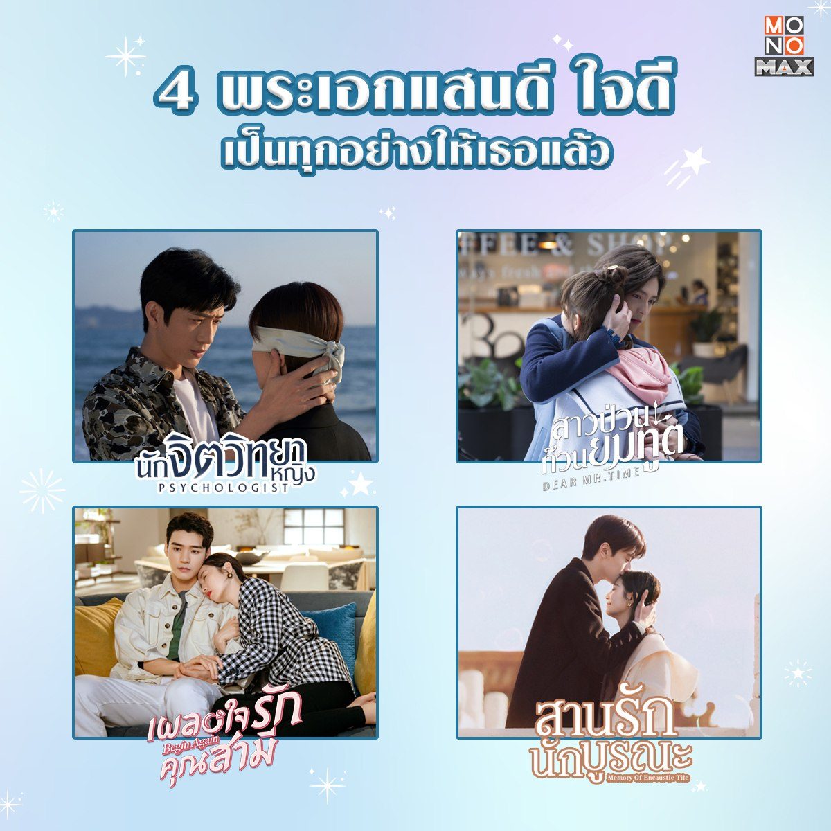ขอแนะนำเหล่าพระเอกซีรีส์ผู้แสนดี ใจดี ละมุนและดีต่อใจสุดๆ บอกเลยว่าแสนดีขนาดนี้ใครไม่รักก็บ้าแล้ว มาดูกันเลยว่ามีใครบ้างนะ หรือไปทำความรู้จักกับพวกเขาให้มากขึ้นได้ที่ MONOMAX