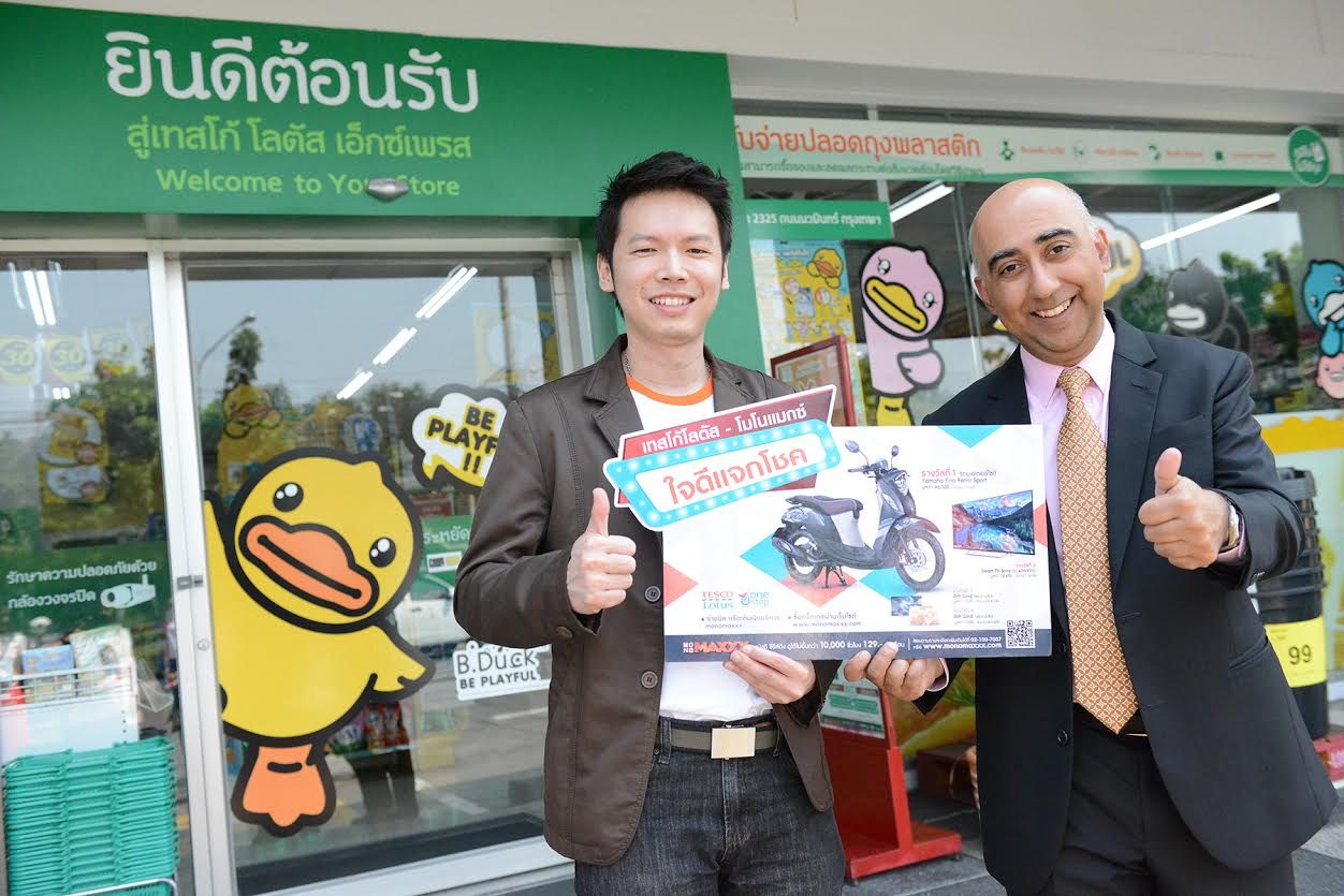 คุณฮาร์จีด ดรูบรา ประธานเจ้าหน้าที่ฝ่ายการเงินและบัญชี บริษัท เทสโก้ โลตัส จำกัด และ คุณปฐมพงศ์ สิรชัยรัตน์ กรรการผู้จัดการ บริษัท โมโนฟิล์ม จำกัดในเครือโมโน กรุ๊ป ร่วมกันจัดแคมเปญ "เทสโก้โลตัส-โมโนแมกซ์ ใจดีแจกโชค" เพื่อคืนกำไรให้ลูกค้าที่จ่ายบิลหรือเติมเงินบริการดูหนังออนไลน์