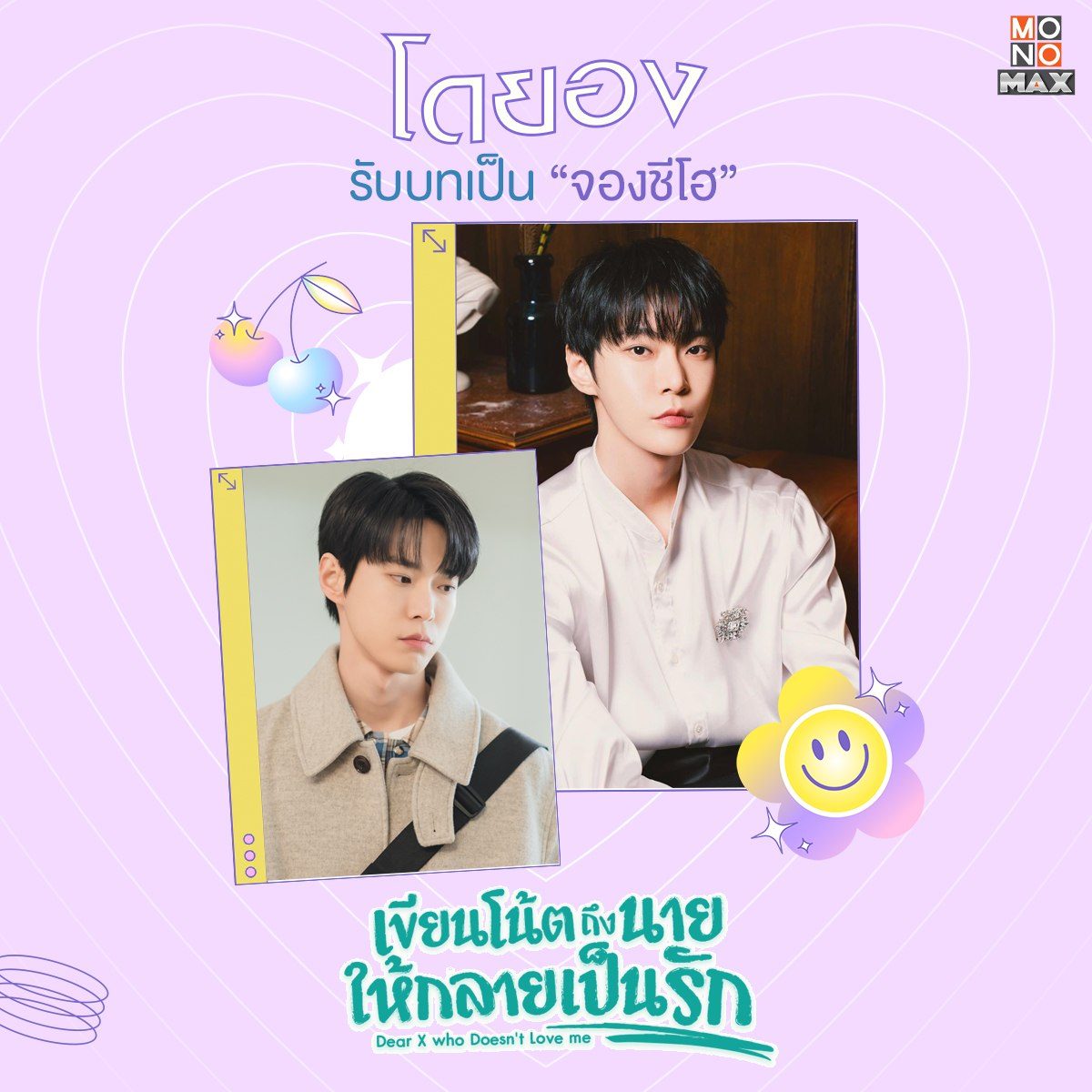 โดยอง รับบท จองชีโฮ ในซีรีส์เกาหลี เขียนโน้ตถึงนายให้กลายเป็นรัก Dear X Who Doesn't Love Me | เพื่อนคนสนิทของสาว ซอฮีซู (ฮันจีฮโย) เขาแอบรักเธอมานานหลายปี แต่ก็ไม่เคยกล้าบอกออกไปด้วยกลัวจะเสียเพื่อน จึงทำได้แค่คอยอยู่ข้างๆ เฝ้าดูเธอตามหารักแท้ และเขายังเป็นเพียงคนเดียวที่รู้ความลับเรื่องสมุดโน๊ตลึกลับของเธอด้วย! งานนี้จากเพื่อนจะได้เลื่อนเป็นแฟนมั้ยนะ?