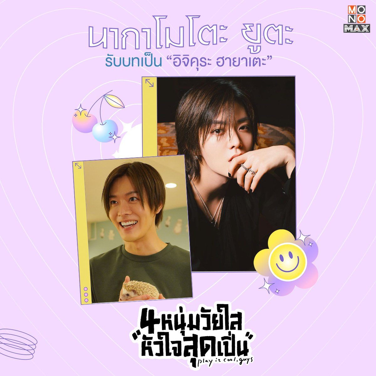 นากาโมโตะ ยูตะ รับบท อิจิคุระ ฮายาเตะ ในซีรีส์ญี่ปุ่น 4 หนุ่มวัยใสหัวใจสุดเปิ่น Play It Cool, Guys | นักศึกษามหาวิทยาลัยผู้หมดหวังกับชีวิตที่แสนธรรมดา เขามักจะเก๊กหล่อเพื่อกลบเกลื่อนเวลาที่ตัวเองทำเรื่องเปิ่นๆ เขาสมัครทำงานพาร์ตไทม์ที่คาเฟ่เล็กๆ แห่งหนึ่ง ทำให้เขาได้พบกับเพื่อนอีก 3 คน ที่มีนิสัยแตกต่างแต่ก็คล้ายคลึงกับเขา ทำให้พวกเขากลายเป็นแก๊งหนุ่มสุดเปิ่น!