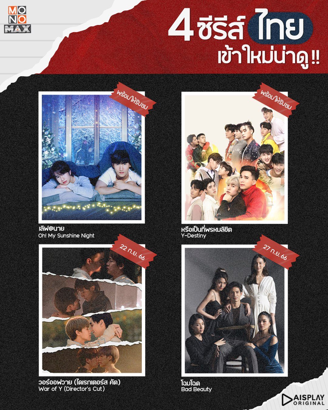 แนะนำ 4 ซีรีส์ไทยเข้าใหม่น่าดูบน MONOMAX