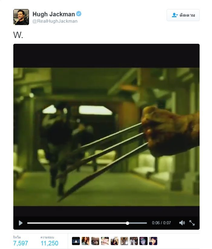 — Hugh Jackman (@RealHughJackman) 25 เมษายน 2559