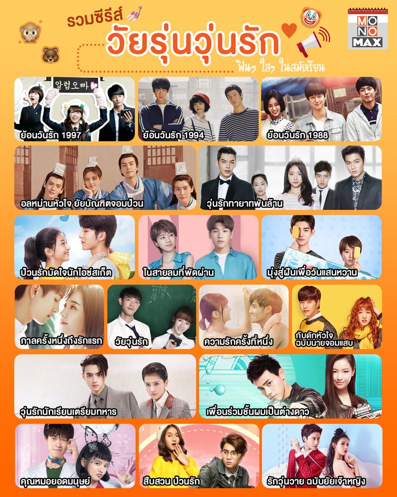 ตามไปดูเรื่องราวใสๆ ชีวิตวัยหวานของเยาวรุ่นหนุ่มสาว รับรองสนุกซึ้งใจ รับชมได้ทุกเรื่องพากย์ไทยและซับไทยได้แล้ววันนี้ที่ MONOMAX