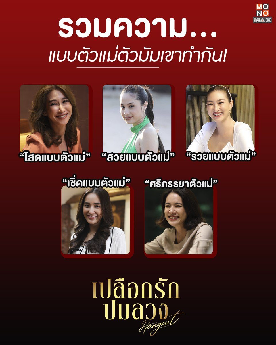 "เปลือกรักปมลวง Hangout" ซีรีส์ที่รวมเหล่าตัวแม่ไว้มากที่สุด วันนี้เลยถือโอกาสรวบรวมความ... แบบที่ตัวมัมเขาทำมาให้ทุกคนได้ดูกัน! ทาลิป ปัดมาสคาร่าแล้วมาสนุกกับคืนแฮงก์เอาท์ไปพร้อมกันได้แล้ววันนี้ที่ MONOMAX เท่านั้น!!!