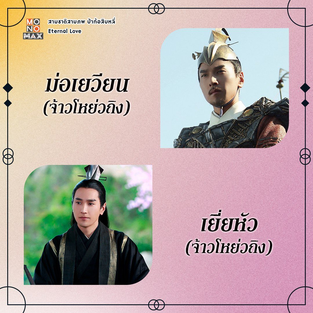 ฝาแฝดเทพเซียนจากซีรีส์จีน สามชาติสามภพ ป่าท้อสิบหลี่ (Eternal Love) โดยคนพี่ "ม่อเยวียน" เป็นเทพสงคราม ส่วนคนน้อง "เยี่ยหัว" เป็นรัชทายาทแห่งแดนสวรรค์