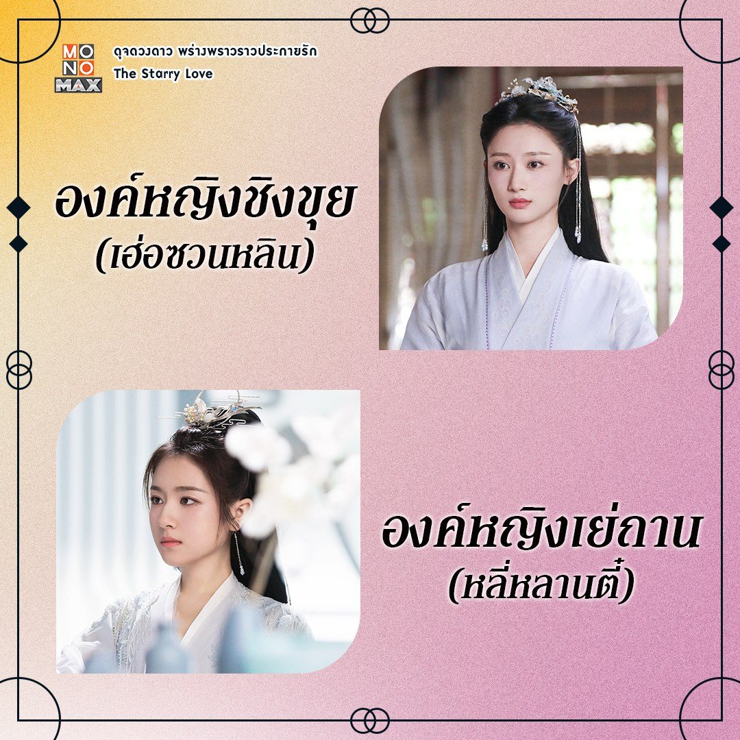 สององค์หญิงฝาแฝดจากซีรีส์จีน ดุจดวงดาว พร่างพราวราวประกายรัก (The Starry Love) เดิมเป็นบุปผาแฝดที่มาจุติในครรภ์ของฮองเฮาแดนมนุษย์ โดย "องค์หญิงชิงขุย" คนพี่เป็นคนเรียบร้อย อ่อนหวาน ด้าน "องค์หญิงเย่ถาน" คนน้อง กลับมีนิสัยซุกซน เจ้าเล่ห์