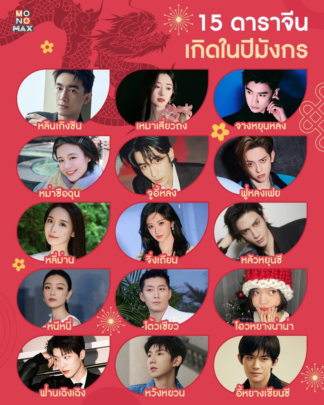 ส่อง 15 ดาราจีนที่เกิดในปีมะโรง (มังกร) ต้อนรับปี 2024