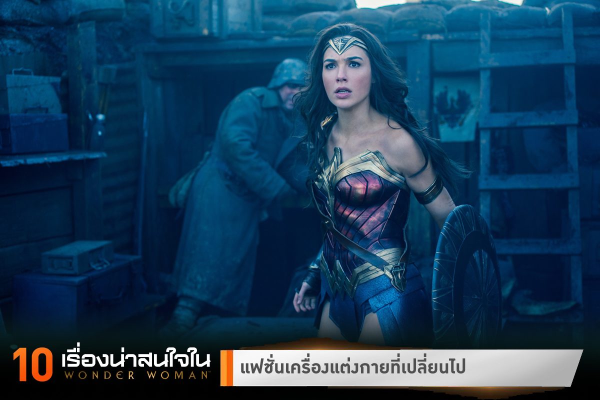 หลายคนอาจคุ้นเคยกับภาพ Wonder Woman ในชุดเสื้อผ้าลวดลายเดียวกับธงชาติอเมริกัน ทว่าในเวอร์ชั่นหนังโรง เธอไม่ได้เป็นฮีโร่ที่สื่อถึงการเป็นฝ่ายอเมริกาอีกต่อไป สัญลักษณ์นกอินทรีที่อยู่กลางอก และกระโปรงลายดาวถูกนำออก แต่ยังคงคุมโทนสีน้ำเงินแดงอันเป็นเอกลักษณ์ดั้งเดิมของเธอ