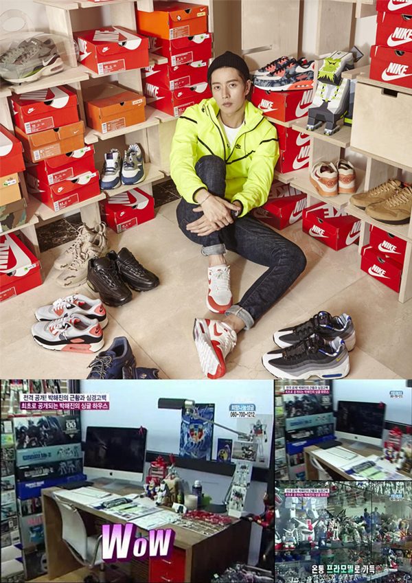 ปาร์คแฮจินมีงานอดิเรกเป็นการสะสมรองเท้า โดยเฉพาะแบรนด์ไนกี้ ที่เขาเก็บสะสมไว้เกือบหนึ่งพันคู่ และเก็บเอาไว้อย่างดีราวกับเป็นโรงงานไนกี้เลยทีเดียว นอกจากรองเท้าแล้วเขายังชอบสะสมหุ่นกันดั้มด้วย