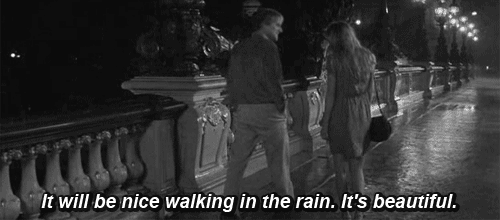 หนังรักสไตล์วรรณกรรมของผู้กำกับ ‘วู้ดดี้ อัลเลน’ เรื่องราวที่เกิดขึ้นกลางกรุงปารีส เมืองหลวงแห่งศิลปะของโลก เมื่อไลฟ์สไตล์ของนักเขียนหนุ่ม กิล ไปกันไม่ได้กับแฟนสาวที่ชื่นชอบการเข้าสังคม และสุดท้ายแล้วกิลก็ค้นพบว่าคนที่จะมาเติมเต็มอารมณ์ศิลปินของเขาได้ ก็คือผู้หญิงที่ชื่นชอบอะไรเหมือนๆกัน ฉากฝนตกฉากนี้คือตอนที่กิลได้พบกับสาวฝรั่งเศสคนหนึ่ง และเธอก็พูดประโยคหนึ่งว่า "ปารีสน่ะจะสวยที่สุดก็ตอนฝนตกนี่แหละ..." ก่อนที่ทั้งคู่จะเดินเคียงข้างกันไปท่ามกลางแสงไฟของเมืองปารีสยามค่ำคืน