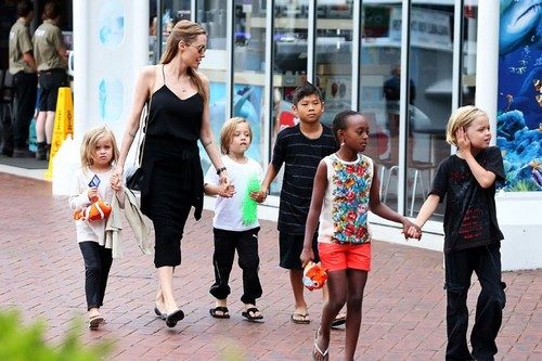 คุณแม่คนสวยของครอบครัวนานาชาติ เธอรับเลี้ยงบุตรบุญธรรมหลากหลายประเทศ ได้แก่ แมดด็อกซ์ จากกัมพูชา แพ็กซ์ จากเวียดนาม และ ซาฮาร่า จากเอธิโอเปีย และลูกแท้ๆ อีก 3 คน ได้แก่ ไชโล่ห์ และคู่แฝด น็อกซ์ และ วิเวียน นอกจากเป็นนักแสดงชื่อดังแล้ว เธอยังเป็นคุณแม่ที่ดีมากคนหนึ่ง ที่เลี้ยงเด็กๆ ทั้ง 6 คนด้วยความรัก และพร้อมจะปกป้องลูกๆของเธอเสมอ เธอเพาะพันธุ์เมล็ดความคิดดีๆ ของเธอ ลงในตัวลูกทุกคน เพื่อให้พวกเขาเติบโตเป็นผู้ใหญ่ที่ดี